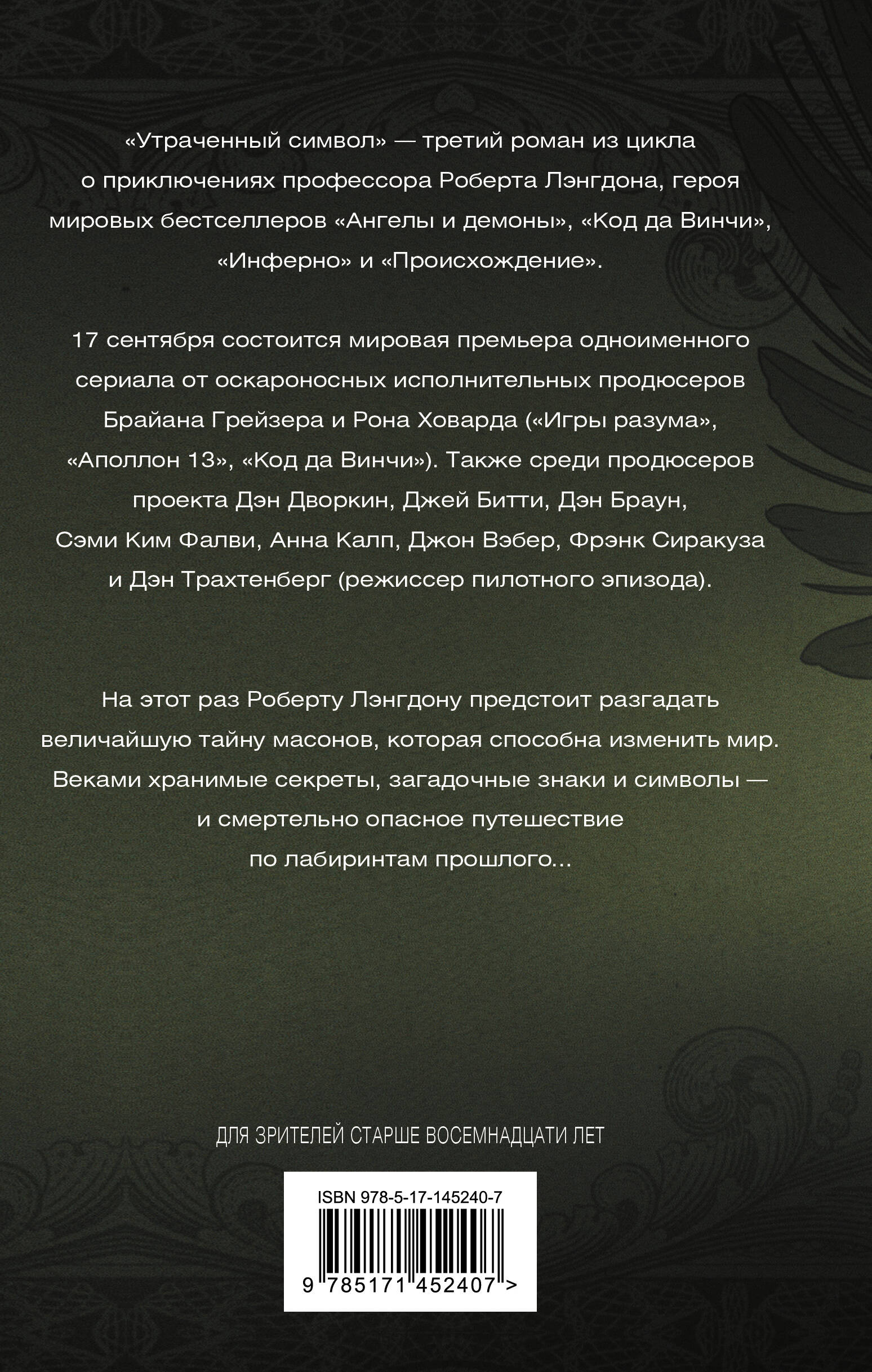От автора культовых романов «Код да Винчи» и «Ангелы и демоны». Дэн Браун - один из самых популярных авторов современности. Совокупный тираж его книг превышает 220 000 000 экземпляров. Третий из цикла романов о Роберте Лэнгдоне. Читай книгу - смотри сериал. 17 сентября на сервисе More.tv состоялась премьера одноимённого телесериала от продюсеров Рона Ховарда и Дэна Брауна.| Издательство | ИЗДАТЕЛЬСТВО "АСТ" |