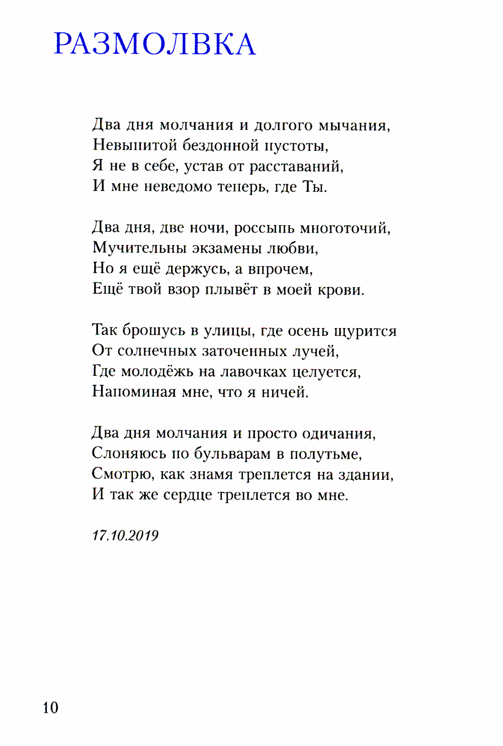 Из этой книги читатель вынесет много знаний и много эмоций. Картины мира здесь переплетаются с размышлениями о жизни, а восторженные экстатические любовные переживания с философскими рецептами и наставлениями. Книга даст что-то своё читателям всех возрастов и поможет открыть для себя значимое имя в поэтической палитре современной России.| Издательство | ИПО "У Никитских ворот" |