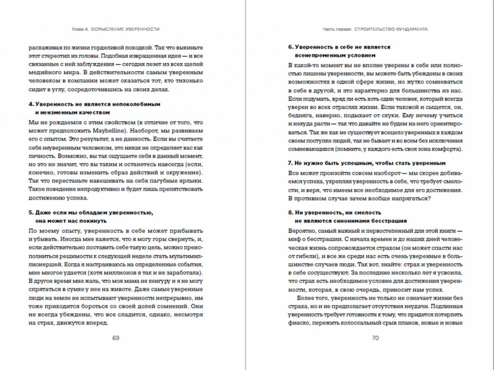 Основываясь на собственном опыте и результатах современных исследований в областях физиологии, социологии и когнитивной психологии, Кэролайн Форен объясняет, как именно справиться с той или иной проблемой. Ее книга помогла тысячам людей во всем мире побороть неуверенность, поверить в себя и полноценно реализоваться без оглядки на чужое мнение.