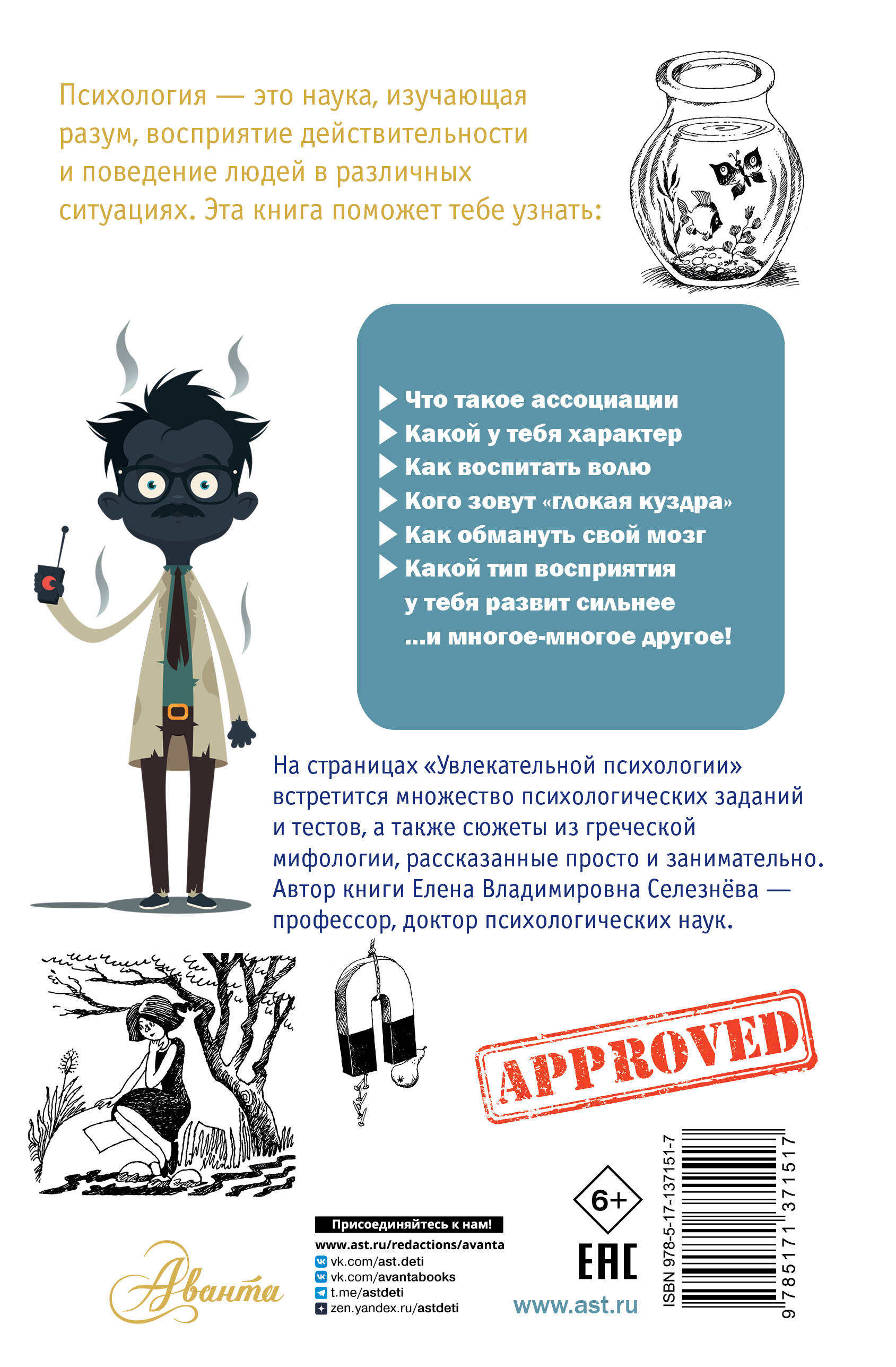 Книга Елены Владимировны Селезневой "Увлекательная психология" расскажет читателям, как развить внимание, силу воли и крепкую память, можно ли слышать цвета и видеть музыку, для чего нужны эмоции, кто такие холерики и флегматики, как поднять настроение, когда грустно... Занимательные истории по случаю, сюжеты из греческой мифологии, задания и тесты сделают чтение по-настоящему занимательным и помогут лучше понять себя и своих близких. Для среднего школьного возраста. Елена Владимировна Селезнева - профессор, доктор психологических наук.| Издательство | ИЗДАТЕЛЬСТВО "АСТ" |