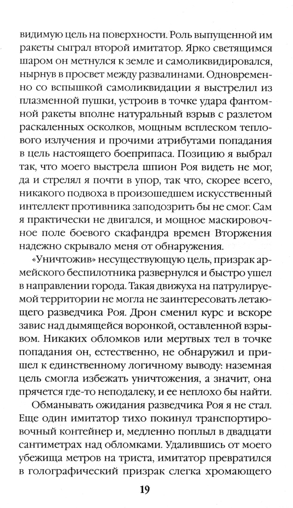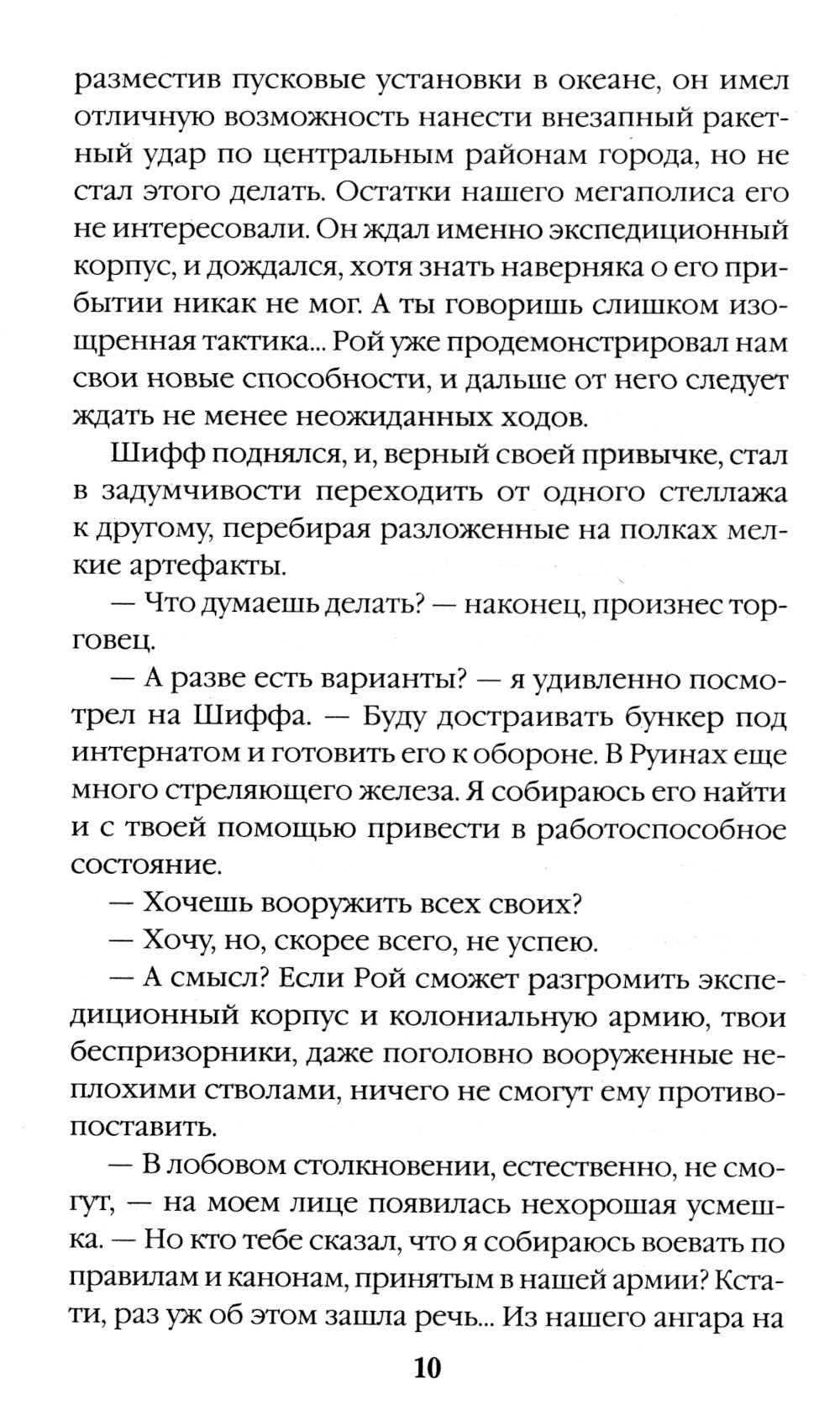 Несмотря на понесенные потери, экспедиционный корпус Федерации твердо намерен нанести удар по владениям Роя. И власти колонии, и новый командующий уверены в успехе предстоящей операции, однако Рич имеет на этот счет несколько иное мнение. Пока войска колонии и силы экспедиционного корпуса готовятся к быстрой и победоносной войне, Рич ставит перед собой совершенно другие задачи. Он уверен, что вскоре после начала боевых действий развалины мегаполиса превратятся в настоящий ад, и делает всё, чтобы выжить в нем самому и спасти поверивших ему людей.| Издательство | Яуза-каталог |