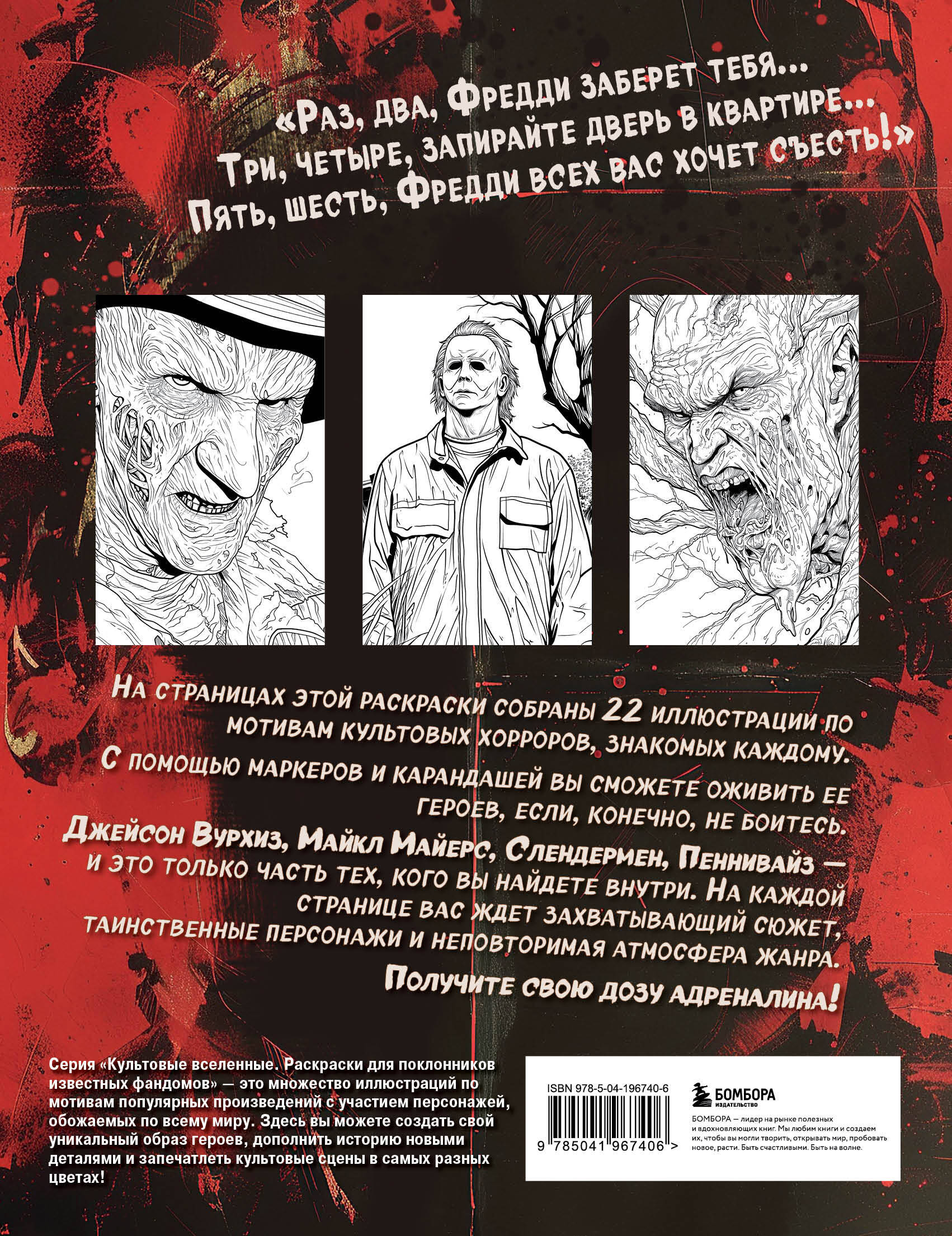 Улучшенное переиздание бестселлера! Всем любителям пощекотать нервы посвящается. Кровавые и ужасные герои культовых киновселенных ждут вас на каждом развороте этой хоррор-раскраски. Пеннивайз, Джейсон Вурхиз, Фредди Крюгер и другие твари, выползающие прямо со страниц! А вот и злобный клоун, какой будет цвет его костюма - решать только вам. Оживите персонажей этой раскраски с помощью карандашей и фломастеров и получите свою дозу адреналина! Идеально подойдет: - для поклонников хорроров; - для тех, кто хотел попробовать себя в роли художника по костюмам будущего фильма ужасов; - для тех, кто не боится творить, используя все: ручки, фломастеры, карандаши или краски.| Издательство | ООО "Издательство "Эксмо" |