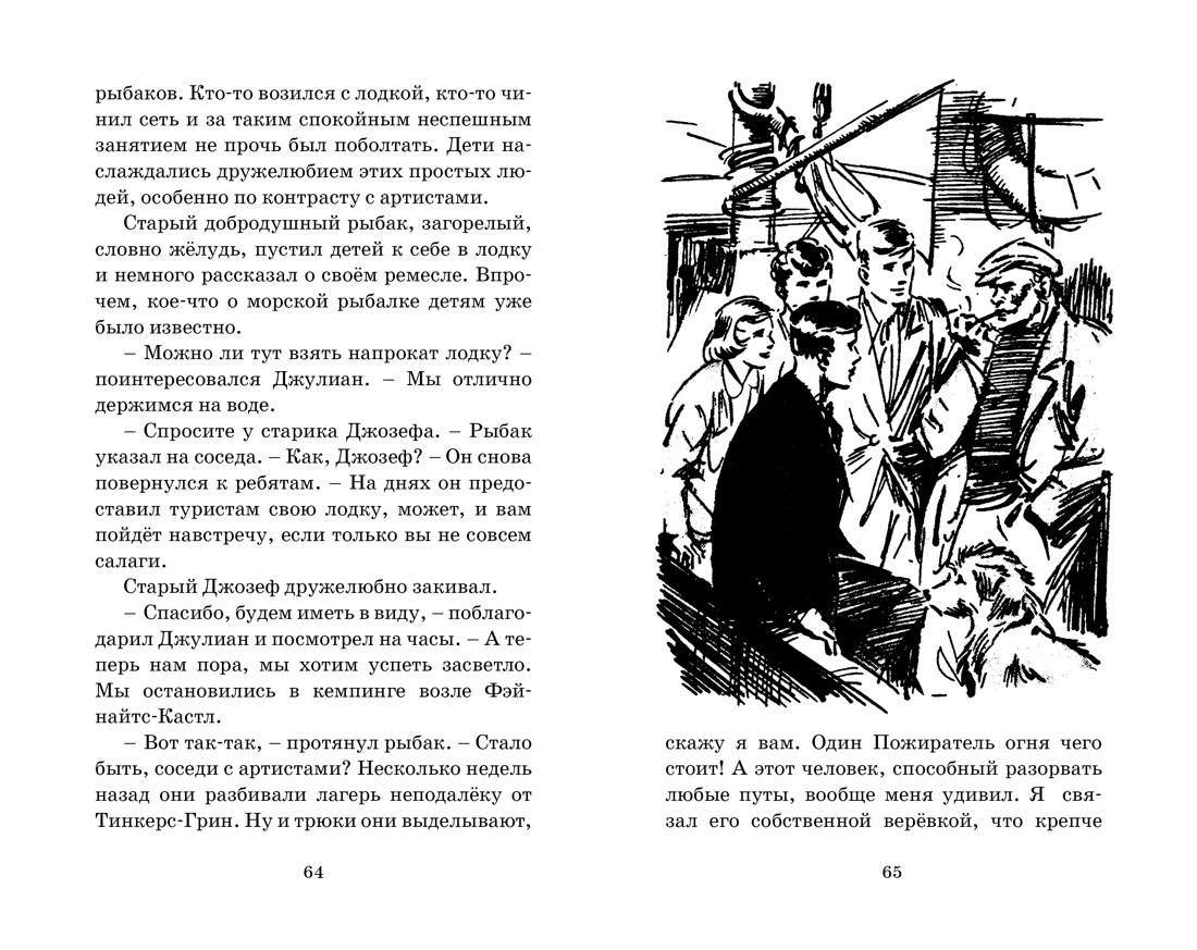 Знаменитая пятёрка снова вместе! На этот раз дети разбивают лагерь в фургончиках близ деревни Фэйнайтс-Кастл. Рядом на вершине холма возвышается полуразрушенный старинный замок. И вот однажды они замечают в окне башни чьё-то преисполненное отчаяния лицо. Интересно, кто там прячется и как он туда попал? И послужит ли это сигналом к началу нового приключения?.. Энид Блайтон - из детских авторов самая читаемая в мире. Её книги переведены на 90 языков и давно стали классикой. В творческом багаже английской писательницы более 800 произведений. Их суммарный тираж превышает 500 миллионов экземпляров.| Издательство | Махаон |