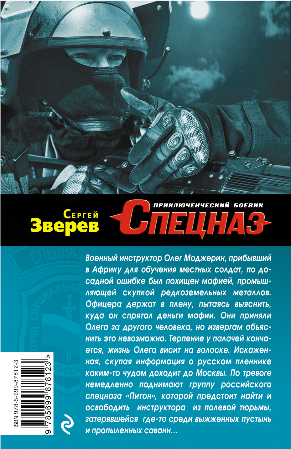 Военный инструктор Олег Моджерин, прибывший в Африку для обучения местных солдат, по досадной ошибке был похищен мафией, промышляющей скупкой редкоземельных металлов. Офицера держат в плену, пытаясь выяснить, куда он спрятал деньги мафии. Они приняли Олега за другого человека, но извергам объяснить это невозможно. Терпение у палачей кончается, жизнь Олега висит на волоске. Искаженная, скупая информация о русском пленнике каким-то чудом доходит до Москвы. По тревоге немедленно поднимают группу российского спецназа «Питон», которой предстоит найти и освободить инструктора из полевой тюрьмы, затерявшейся где-то среди выжженных пустынь и пропыленных саванн…| Автор/составитель | Зверев Сергей |