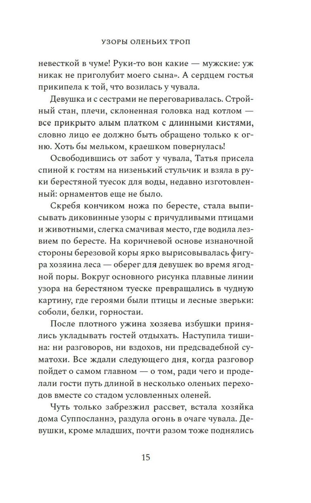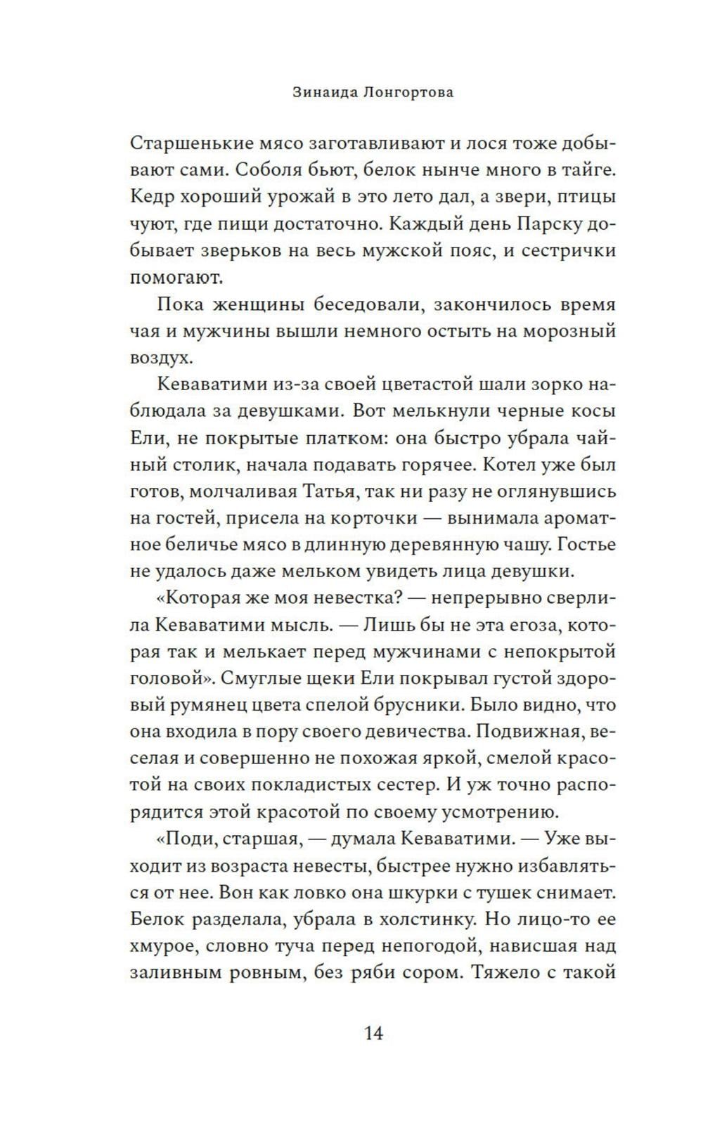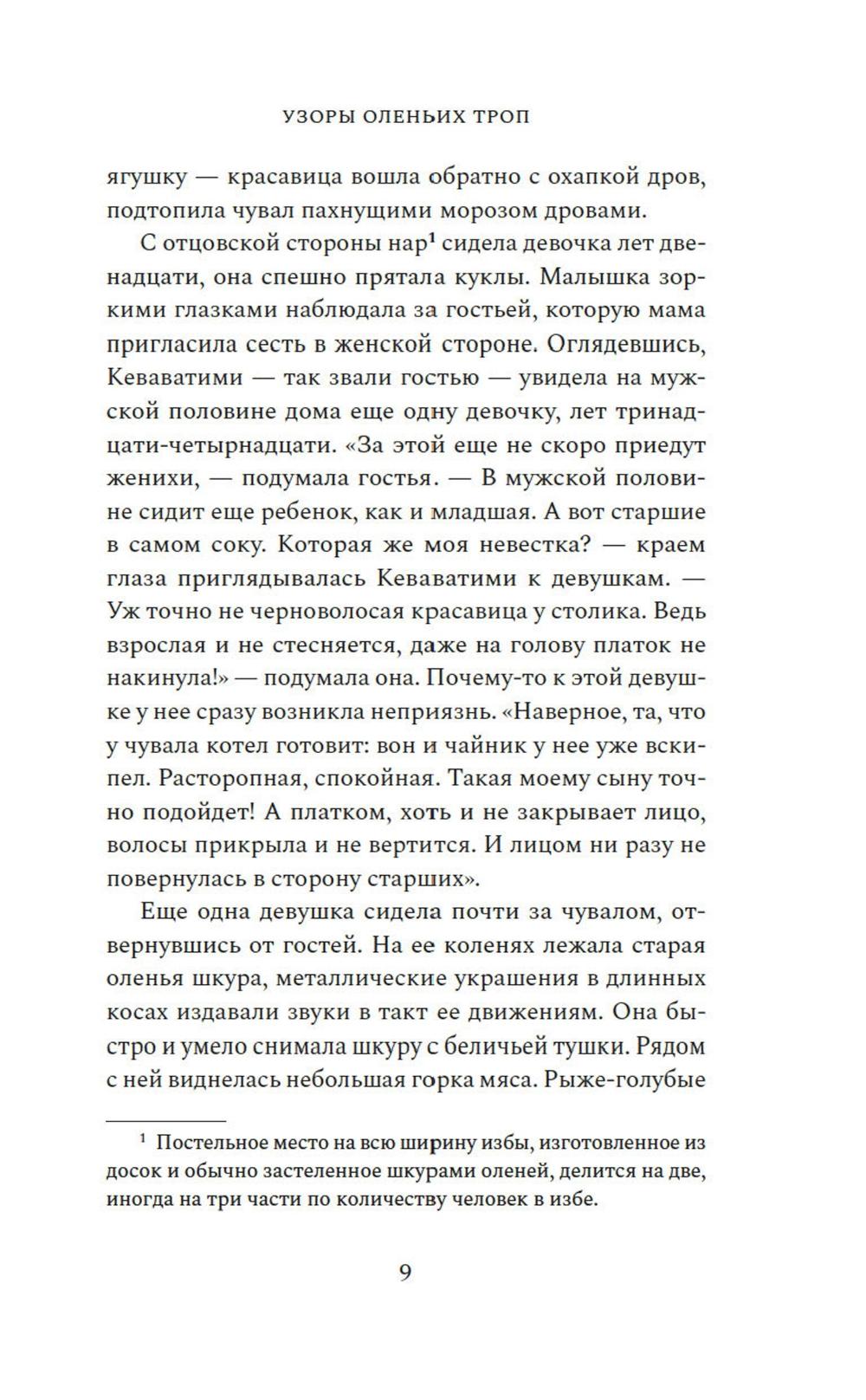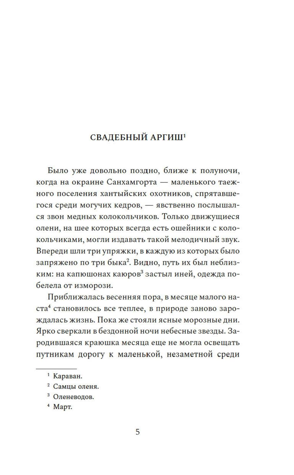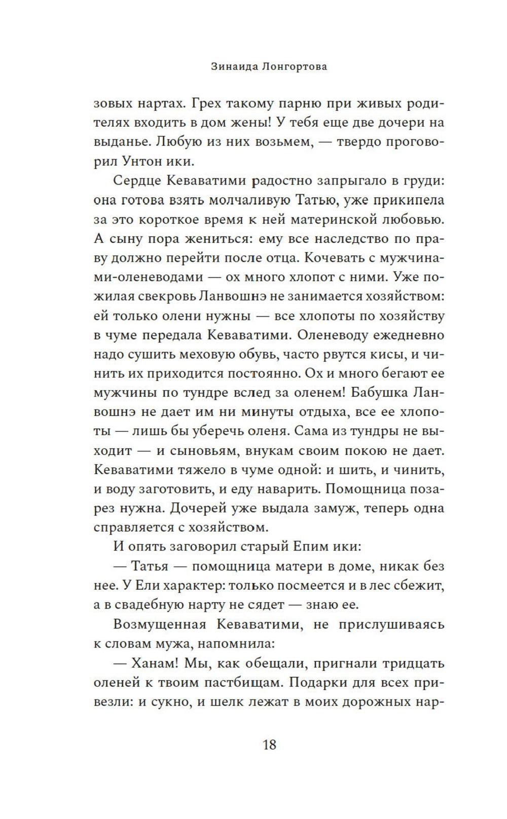 Одной морозной бездонной ночью начала XX века в маленьком таежном поселке хантыйских охотников послышался медный звон колокольчиков. Это свадебный караван из оленьих упряжек передвигался по едва заметным тропинкам от избы к избе. Но в какой двор он завернет? Погонщик же уверенно остановился у дома старика Епим ики. Здесь еще в прошлом году гостям обещали отдать в жены любую из его дочерей. Вот только отец не пожелал отдавать старших дочерей - самому нужны помощницы в хозяйстве. После долгих уговоров сошлись в непростом решении: замуж пойдет самая младшая дочка - юная Кунаватэвие. И уже на следующей день усадили девушку с приданым в невестину нарту и свадебный караван тронулся в путь. Впереди Кунаватэвие ждала взрослая жизнь в незнакомом большом семействе под присмотром сварливой свекрови. Жизнь, бурлящая событиями, как могучая кормилица Обь-река.| Издательство | КоЛибри |