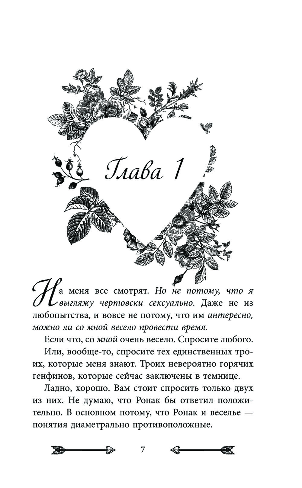 Заметка на будущее: в следующий раз, когда я привяжусь к кому-то, не забыть убедиться, что этим людям не грозит смертельная опасность. Да. Снова полный отстой... Моим любимым парням предстоят королевские состязания. Я буду наблюдать за ними, но должна оставаться незаметной. Иначе принц посадит меня в тюрьму и подвергнет пыткам. Но мы справимся, я уверена. По крайней мере процентов на семьдесят. Ладно, на пятьдесят. О'кей, а что потом-то? - спросите вы. Ну-у-у, список дел у меня длинный. На первом месте - убедить парней, что они принадлежат только мне. Затем попробовать вино фейри. А еще наслаждение. Море наслаждения. А знаете, чего я хочу больше всего? Как и раньше - найти свою настоящую любовь. Ставлю сердечко, что план отличный!| Издательство | Эксмо |