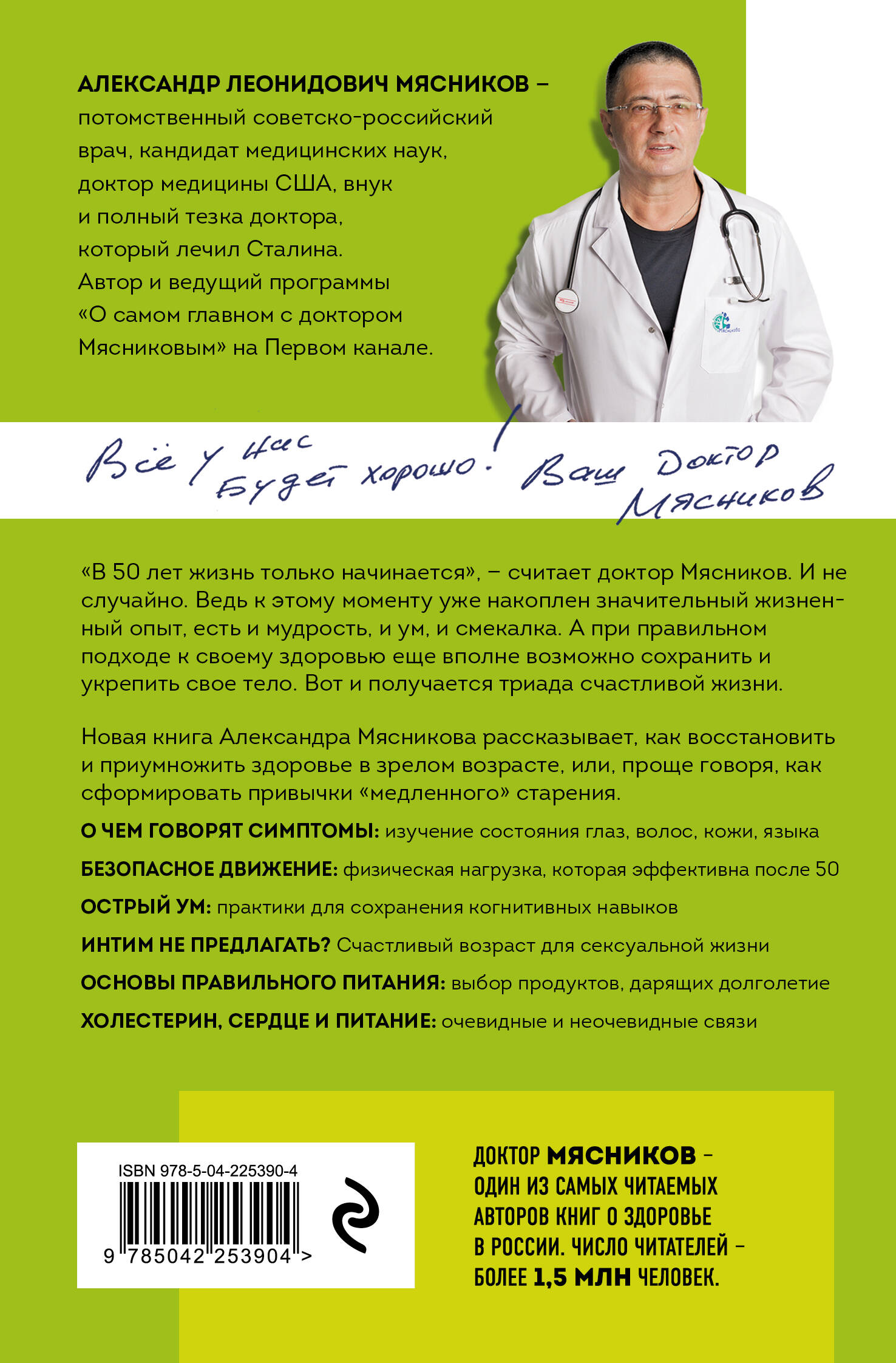Новая книга Александра Мясникова рассказывает, как восстановить и преумножить здоровье в зрелом возрасте, или, проще говоря, как сформировать привычки «медленного» старения. - О чем говорят симптомы: изучение состояния глаз, волос, кожи, языка - Безопасное движение: физическая нагрузка, которая эффективна после 50-ти - Острый ум: практики для сохранения когнитивных навыков - Интим не предлагать? Счастливый возраст для сексуальной жизни - Основы правильного питания: выбор продуктов, дарящих долголетие - Холестерин, сердце и питание: очевидные и неочевидные связи| Издательство | ООО "Издательство "Эксмо" |