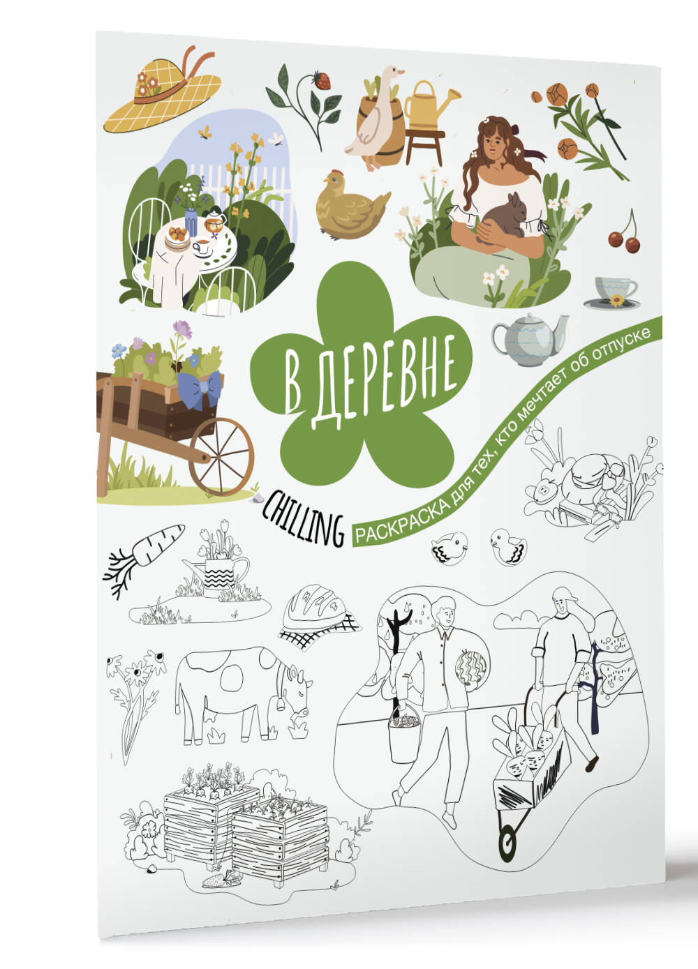 Раскраска "В деревне" подойдет всем, кто мечтает о простых радостях деревенской жизни, свежем воздухе и гармонии с природой. Каждая иллюстрация вдохновлена живописными пейзажами - зелеными полями, цветущими садами и уютными домиками, которые перенесут вас в мир безмятежности и тепла. Откройте для себя сцены загородной жизни и используйте свои любимые цвета, чтобы оживить каждую деталь и выразить свою индивидуальность. Это идеальный способ снять стресс и насладиться моментами ожидания вашего следующего отдыха на природе. Присоединяйтесь к нам творческом путешествии и дайте воплотиться своим мечтам об отдыхе вдалеке от городской суеты!| Издательство | Издательство "АСТ" |