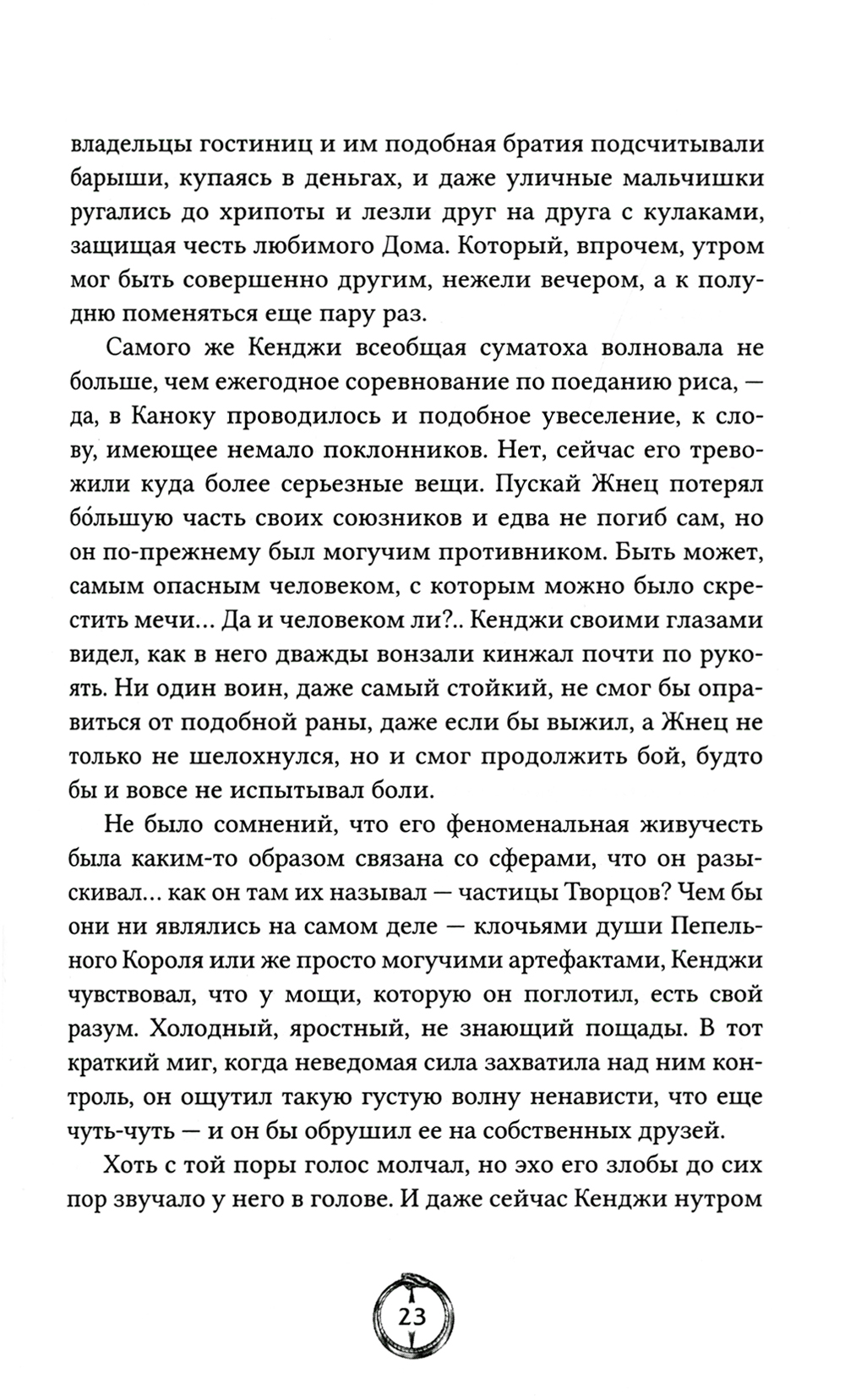В Каноку, столице Весской империи, объявлен Великий турнир всех Домов. Для одних это грандиозное событие - шанс обессмертить собственное имя и отстоять честь родного Дома. Для других - удобная возможность свести счеты с врагами и укрепить личную власть. Но Жнец, уцелевший лидер секты Братства Рока, готов использовать праздник для воплощения в жизнь давно задуманного масштабного плана. Похоже, никто не сможет встать у нет на пути... Никто, кроме Кенджи - бывшего бродяги, а теперь нового бойца Дома Змея. Кенджи, в глазах которого все чаще загорается так хорошо знакомый Жнецу темный огонь. Кенджи, поклявшегося уничтожить Жнеца любой ценой.| Издательство | РОСМЭН |