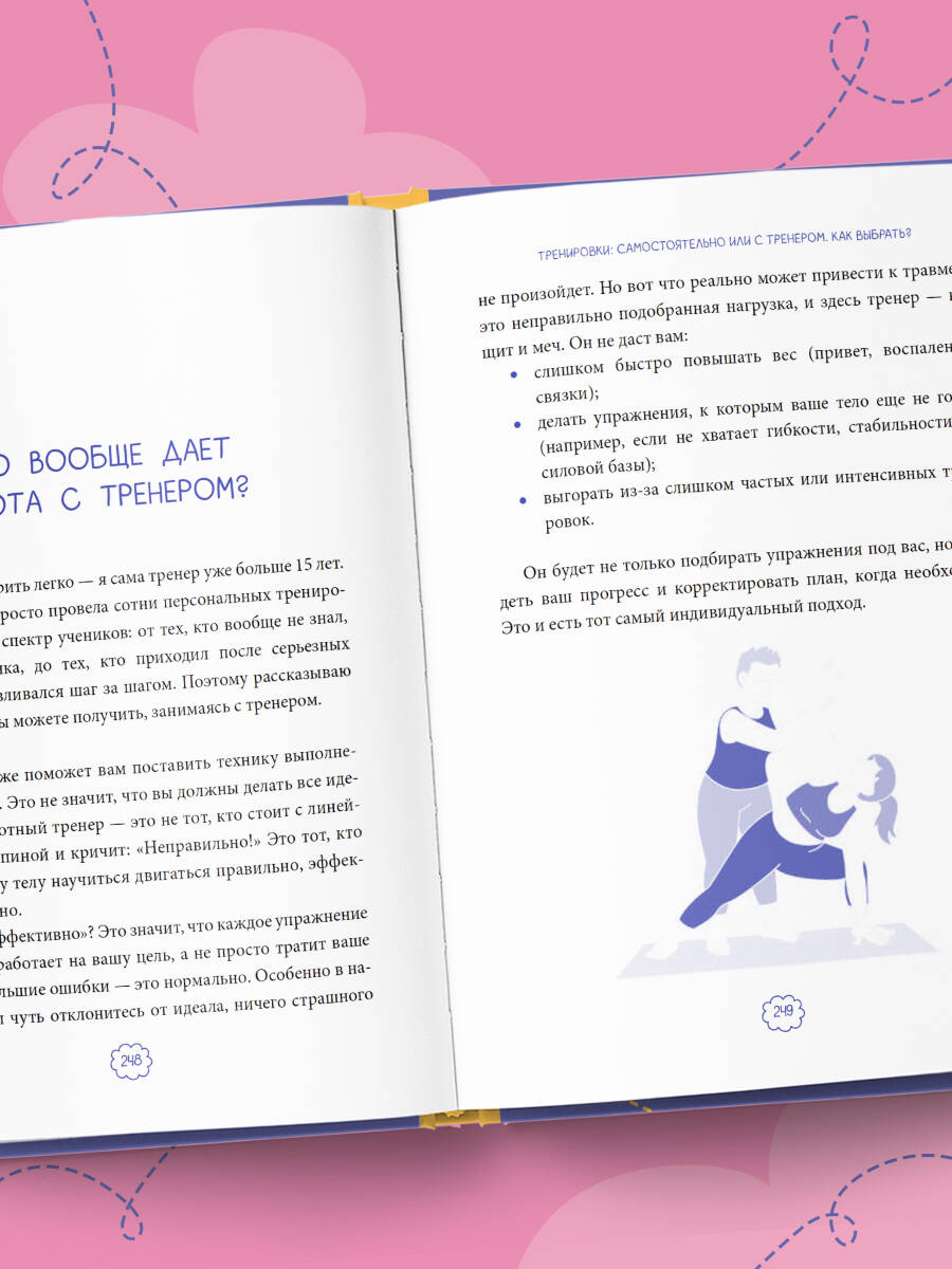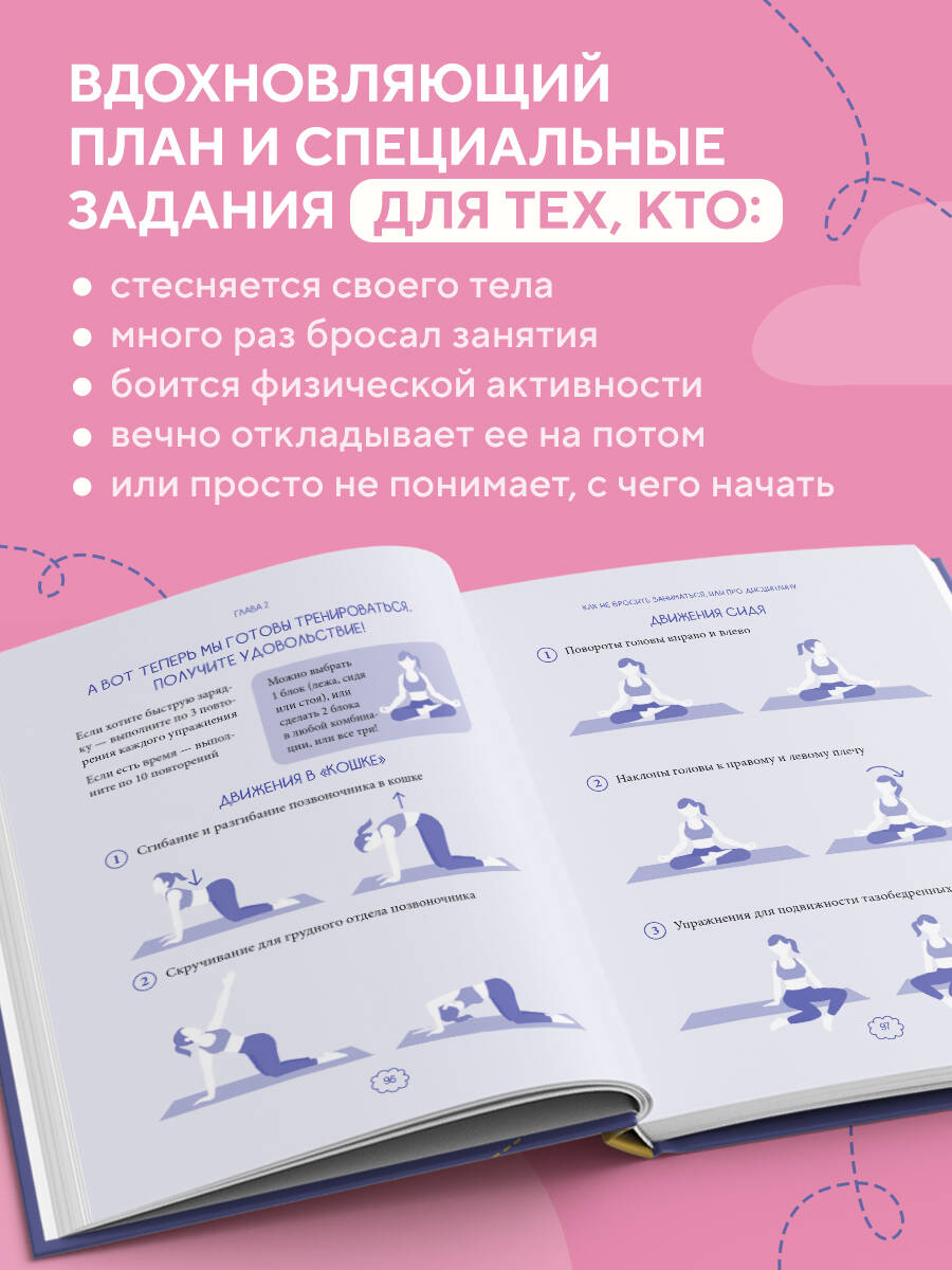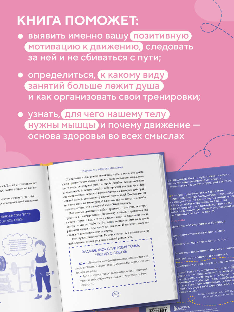 Сколько раз вы планировали начать тренироваться, но откладывали и ленились? Сколько видео с упражнениями вы сохраняли себе, чтобы сделать когда-нибудь потом? Сколько раз вы испытывали стыд за то, что так и не начали? Думали, что тренировки - это только про силу воли, выматывание себя и вечное недовольство собой? Вы не ленивы. Вам просто не хватало ключа - ключа, который превращает движение из тяжелой обязанности в источник сил для всего, что вам дорого: здоровья, общения с семьей и близкими, активных путешествий. Что изменится после прочтения: - вы получите ресурс для полноценной жизни: перестанете тратить силы на внутренние уговоры и обретете импульс, чтобы регулярно двигаться; - вы примете себя и сможете двигаться не потому, что «надо» или «стыдно», а потому что это станет естественной частью заботы о своем теле; - вы найдете собственную мотивацию, преодолеете лень, страх и перфекционизм, которые годами мешали вам начать. Внутри вы найдете: - последовательные задания, которые мягко формируют привычку к активному образу жизни; - простые и безопасные упражнения, которые можно выполнять дома без специального оборудования; - вдохновляющие истории, показывающие, что тренировки доступны каждому, независимо от возраста и состояния здоровья. Эта книга: - для тех, кто знает, что тренировки важны для здоровья, но никак не может начать; - для тех, у кого тренировки были в жизни, но после перерыва сложно вернуться; - для тех, кто не знает, с чего начать, и боится себе навредить; - для тех, кто устал от чувства вины за то, что постоянно бросает; - для тех, кто откладывает и ждет идеального момента; - для тех, кто считает, что тренировки - «это не мое»; - для тех, для кого движение - не цель, а инструмент долгой, здоровой и активной жизни. «Эта книга с первых страниц поможет вам понять потребности своего тела, ведь тело создано для жизни, а жизнь - для движения. Эта книга не о том, как "исправить" тело. Она о том, как наконец подружиться с ним. Юля - тренер, который умеет говорить о движении, силе и заботе о себе без давления и чувства вины. Она помогает не гнаться за чужими стандартами, а находить настоящую мотивацию - не для того, чтобы понравиться кому-то, а чтобы чувствовать себя хорошо в своем теле. Читать ее - значит? встретиться с человеком, который спокойно и по-доброму ведет тебя к версии себя, где ты свободна, сильна и настоящая». - Мария Кардакова, PhD, нутрициолог, автор книг, основательница iCook| Издательство | ООО "Издательство "Эксмо" |