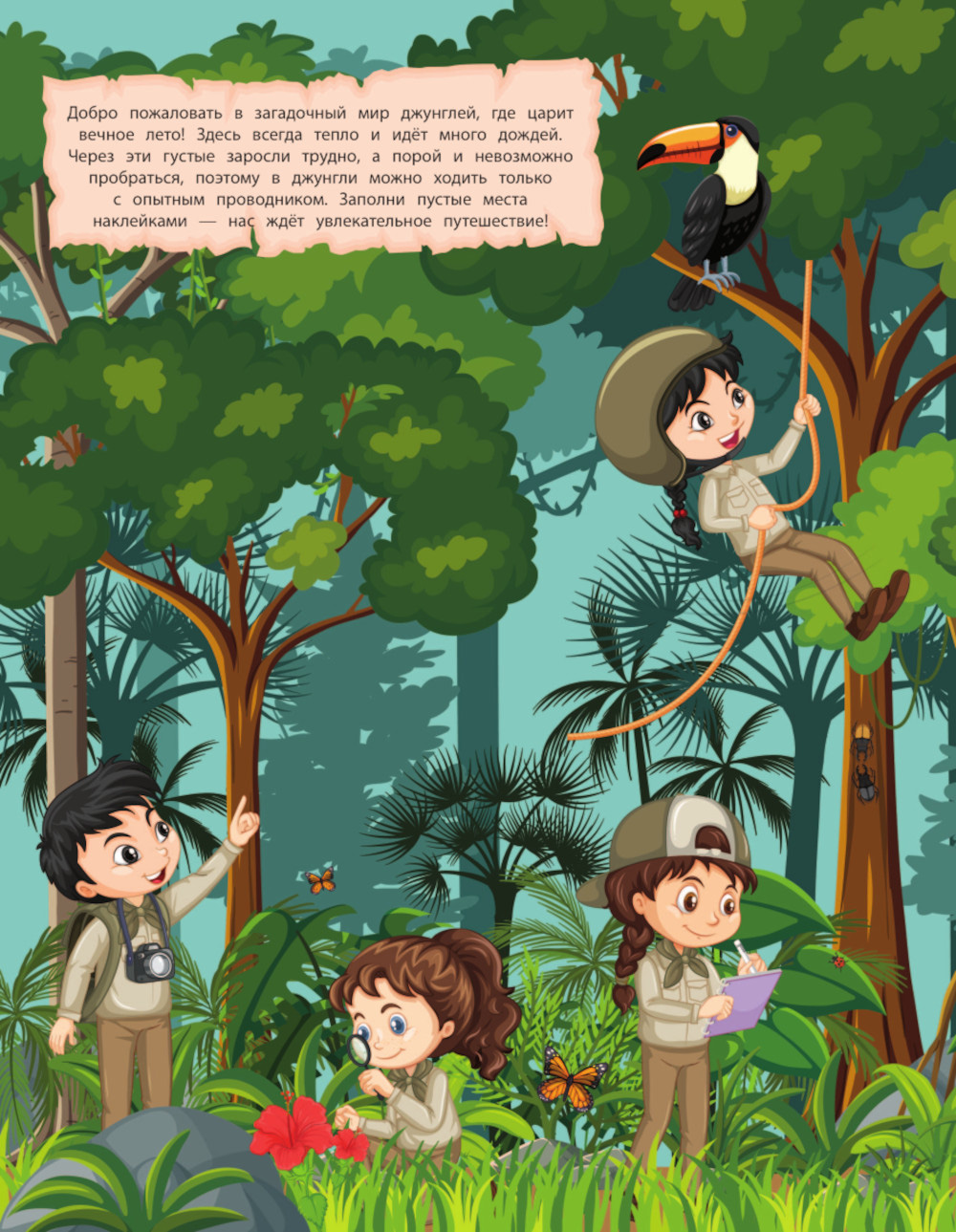 «150 наклеек. В джунглях» - это увлекательная книга с наклейками, разработанная специально для детей в возрасте от 4 до 7 лет. В этой книге дети отправятся в захватывающее путешествие в джунгли, где им предстоит встретить удивительных животных и разнообразные растения. Страницы оживают благодаря 150 ярким и красочным наклейкам. Дети смогут создавать уникальные сцены с животными, заполнять лесные пространства разнообразной флорой и фауной, а также вносить свою фантазию и творчество в каждую страницу. Эта книга не только развлечет детей, но и поможет развить их моторику, воображение и зрительное восприятие. Она отличается удобным форматом и качественными наклейками, которые легко приклеить и отклеить без повреждения страниц.| Издательство | Эксмо |