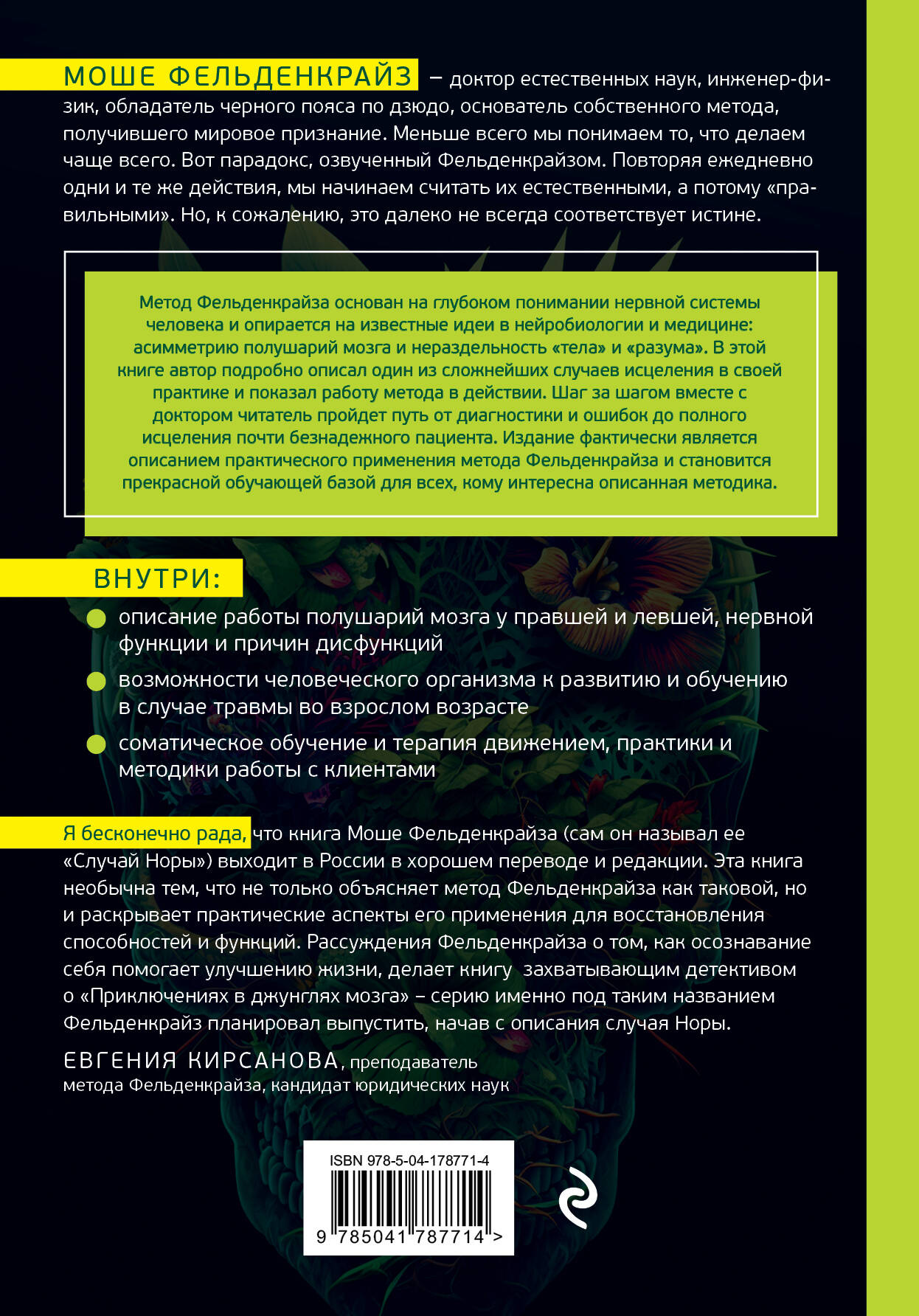 Тысячи людей обрели здоровье и раскрыли в себе «сенсорную осведомленность» благодаря методу Фельденкрайза. Объединив физическое и умственное, доктор разработал систему, позволяющую оценить себя и свои двигательные привычки со стороны, найти проблемные зоны и проработать их, последовательно обучая тело двигаться правильно и безболезненно. Никакой заумной теории или эзотерики - только медицина и физиология под новым углом зрения. Представлены упражнения для: - формирования хорошей осанки; - выравнивания линии плеч; - улучшения зрения; - развития здорового воображения; - оттачивания новых полезных привычек. Работа автора проиллюстрирована известным во всем мире случаем исцеления пациентки - Норы, получившей серьезную травму в результате инсульта и лишившейся способности производить самые простые действия. Благодаря методу Фельденкрайза Нора под пристальным наблюдением ученых и врачей смогла заново и в совершенстве освоить основные навыки, связанные с действием: читать, писать, ходить и говорить.| Издательство | ООО "Издательство "Эксмо" |