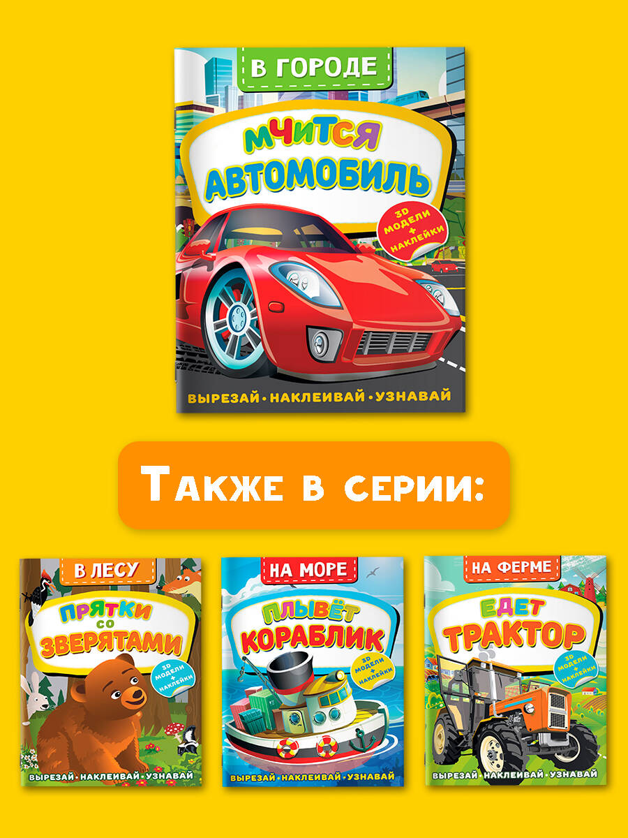 5 причин купить книгу: 1. 4 уникальных 3D-модели автомобилей (3 машины + автобус) 2. Широкие контуры для удобного и быстрого вырезания моделей. 3. 40 интерактивных наклеек. 4. Задания с участием 3D-моделей. 5. Задания для развития логики, внимания, пространственного мышления.| Издательство | АСТ |