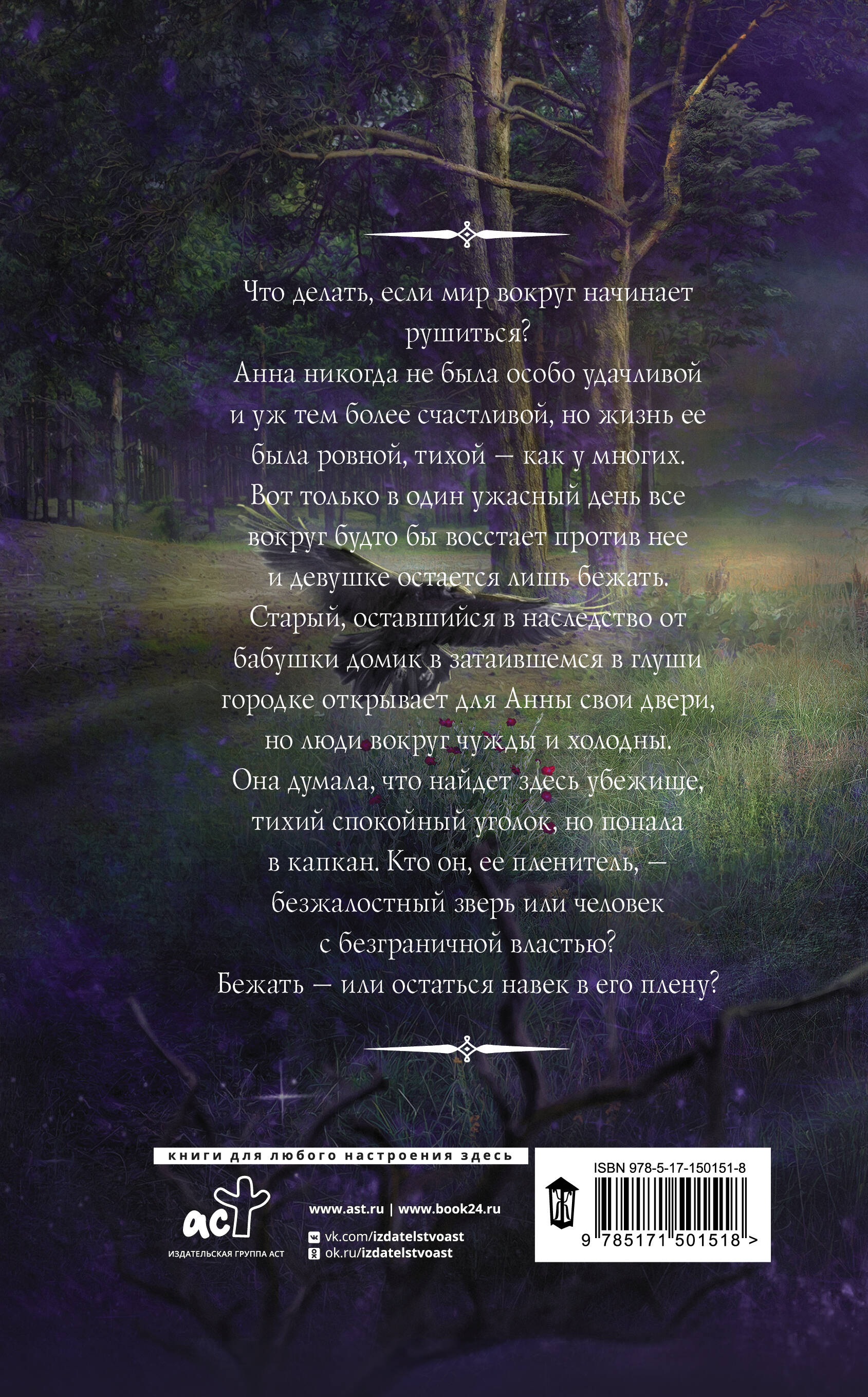 Что делать, если мир вокруг начинает рушиться? Анна никогда не была особо удачливой и уж тем более счастливой, но жизнь ее была ровной, тихой - как у многих. Вот только в один ужасный день все вокруг будто бы восстает против нее и девушке остается лишь бежать. Старый, оставшийся в наследство от бабушки домик в затаившемся в глуши городке открывает для Анны свои двери, но люди вокруг чужды и холодны. Она думала, что найдет здесь убежище, тихий спокойный уголок, но попала в капкан. Кто он, ее пленитель, - безжалостный зверь или человек с безграничной властью? Бежать - или остаться навек в его плену?| Издательство | ИЗДАТЕЛЬСТВО "АСТ" |