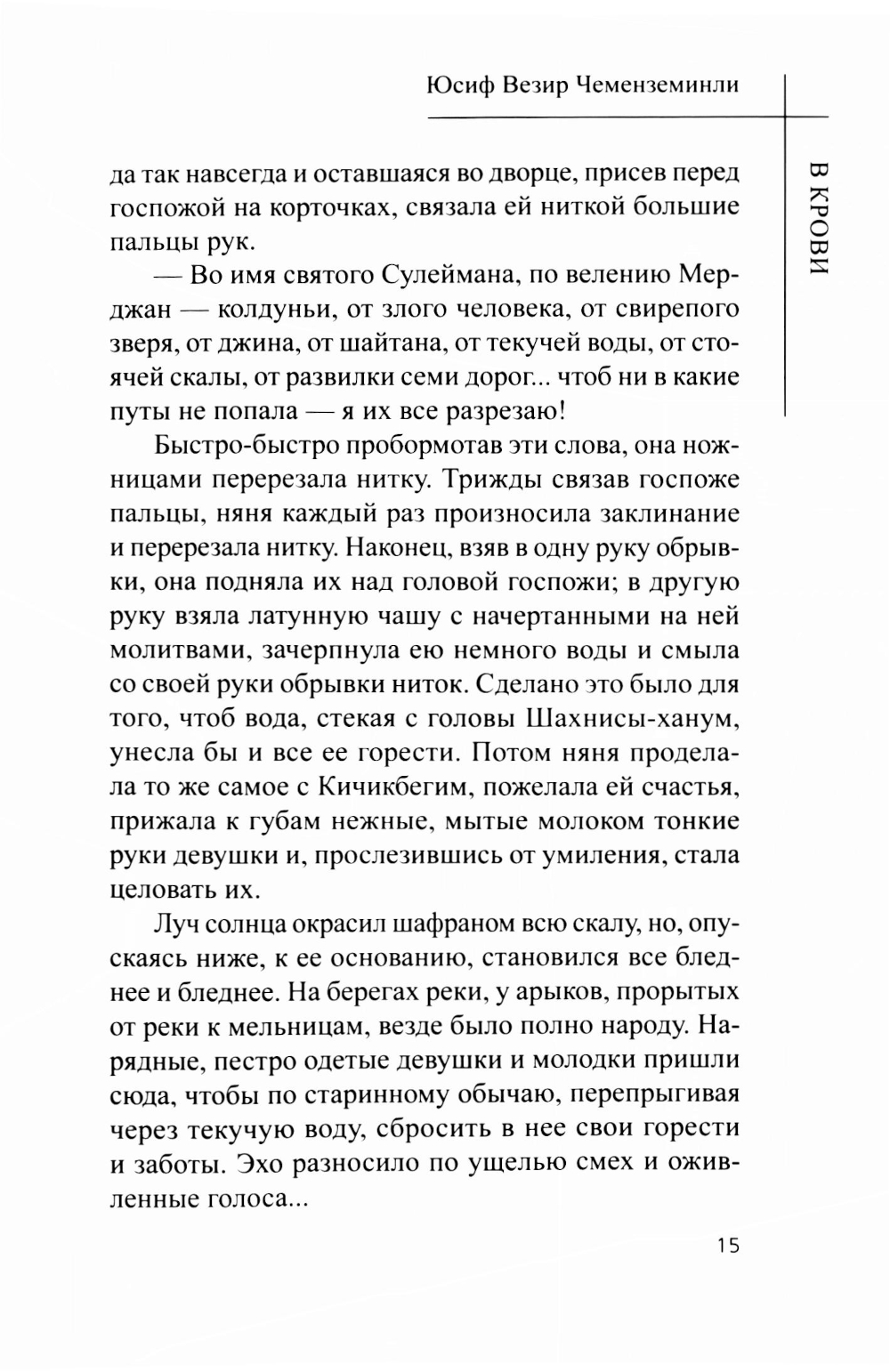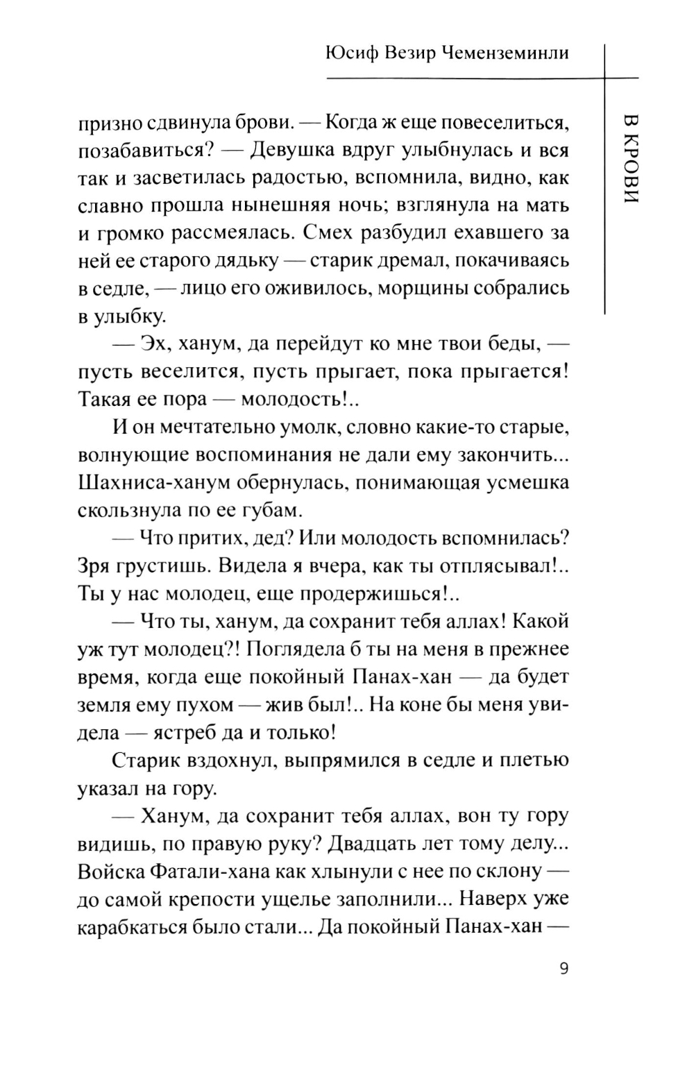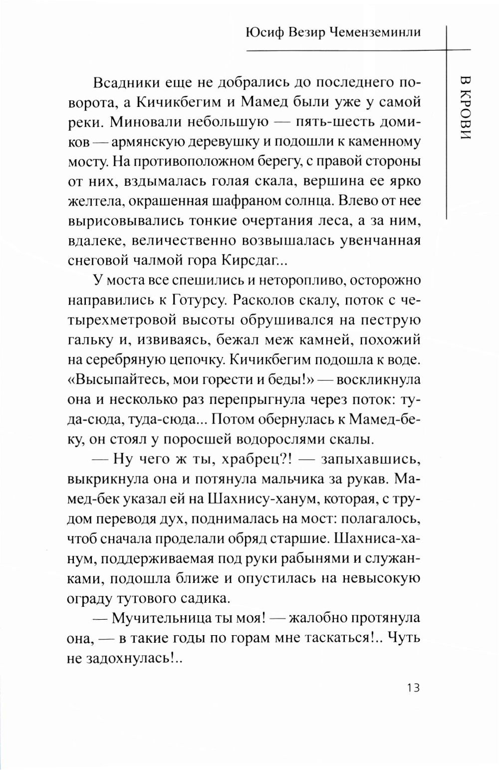 Историк, исследователь, переводчик, педагог, дипломат, Юсиф Везир Чеменземинли (1887-1943) был прежде всего писателем. Точнее - писателем-историком. Эта двойная его ипостась со всей очевидностью сказалась в последнем написанном им сочинении, романе «В крови», где художественный вымысел и почерпнутые из многочисленных им изученных источников факты сплелись в завораживающее своим драматизмом повествование, когда рассказ о событиях былых веков читается как летопись сегодняшней жизни. Как это часто случается (случается только когда имеем дело с очень хорошей литературой), роман написан словно «на вырост», и не для современников автора - для нас. Роман этот стоит прочитать - что не составит труда, поскольку его подлинно авантюрная составляющая категорически исключает скуку. Прочитав и закрыв последнюю страницу - над ним имеет смысл подумать…| Издательство | Центр книги Рудомино |