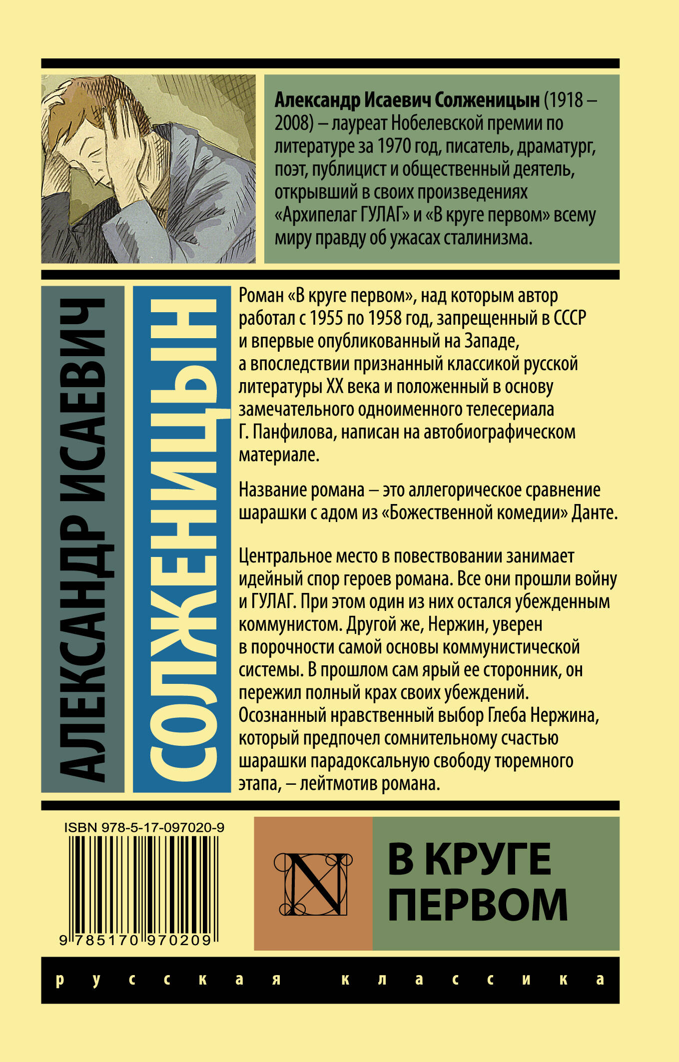 Роман "В круге первом", над которым автор работал с 1955 по 1958 год, запрещенный в СССР и впервые опубликованный на Западе, а впоследствии признанный классикой русской литературы ХХ века и положенный в основу замечательного одноименного телесериала Г. Панфилова, написан на автобиографическом материале. Название романа - это аллегорическое сравнение шарашки с адом из "Божественной комедии" Данте. Центральное место в повествовании занимает идейный спор героев романа. Все они прошли войну и ГУЛАГ. При этом один из них остался убеждённым коммунистом. Другой же, Нержин, уверен в порочности самой основы коммунистической системы. В прошлом сам ярый ее сторонник, он пережил полный крах своих убеждений. Осознанный нравственный выбор Глеба Нержина, который предпочёл сомнительному счастью шарашки парадоксальную свободу тюремного этапа, - лейтмотив романа.
