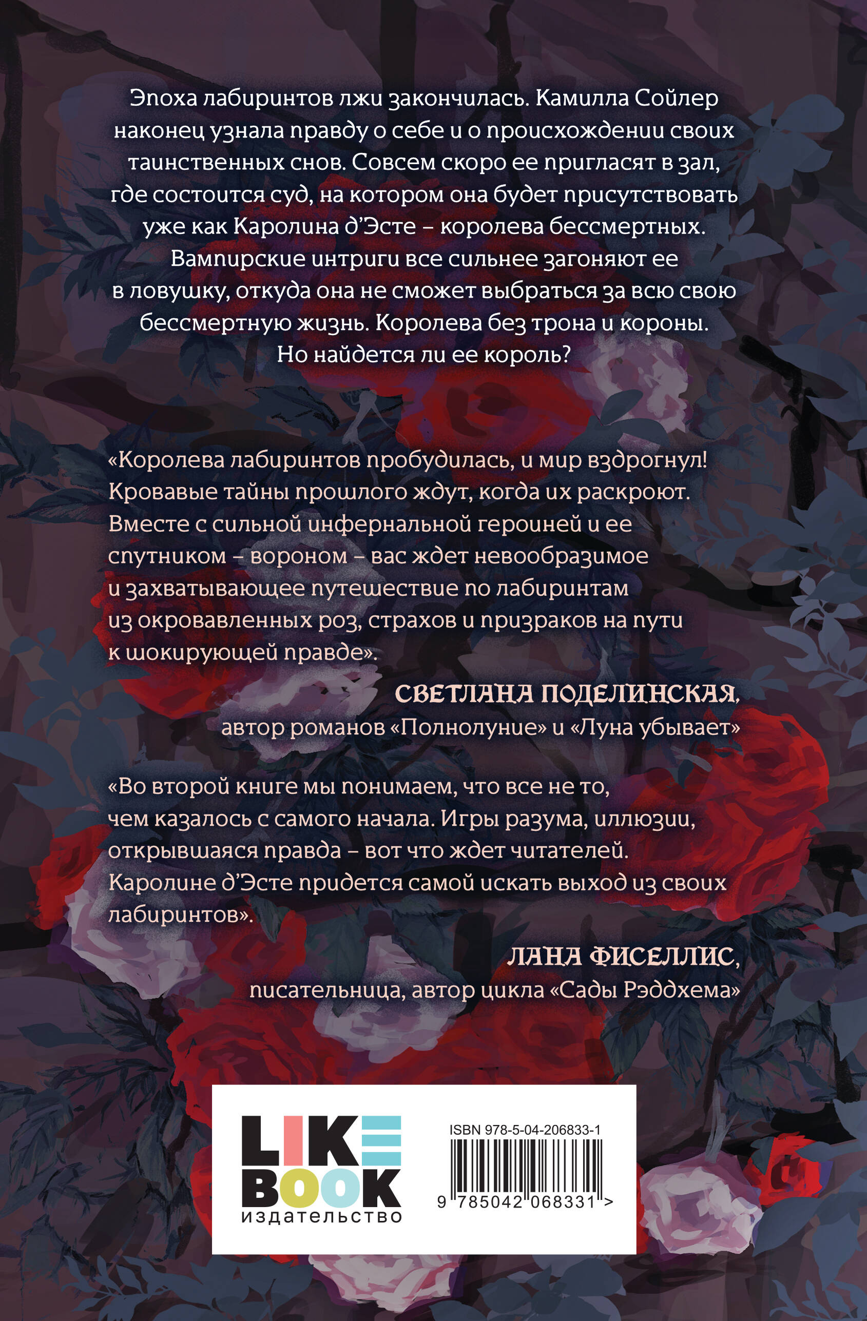 ВТОРАЯ ЧАСТЬ ВАМПИРСКОЙ ТРИЛОГИИ «КОРОЛИ ЛАБИРИНТОВ» ОТ НЕПОДРАЖАЕМОЙ РИИ МИЛЛЕР! Камилла Сойлер, главная героиня романа «В лабиринтах правды», уже давно завоевала сердца читателей онлайн-платформ. Ее загадочность, хрупкость и в то же время храбрость откроют сердце для тайных лабиринтов нашей души, заново влюбят нас в вампиров и проведут по темной эстетике порока. 12 000 прочтений на Wattpad! Второе место по запросу «вампиры». Для любителей цикла «Желание» Трейси Вульф, «Дракулы» Брэма Стокера, сериала «Дневники вампира».