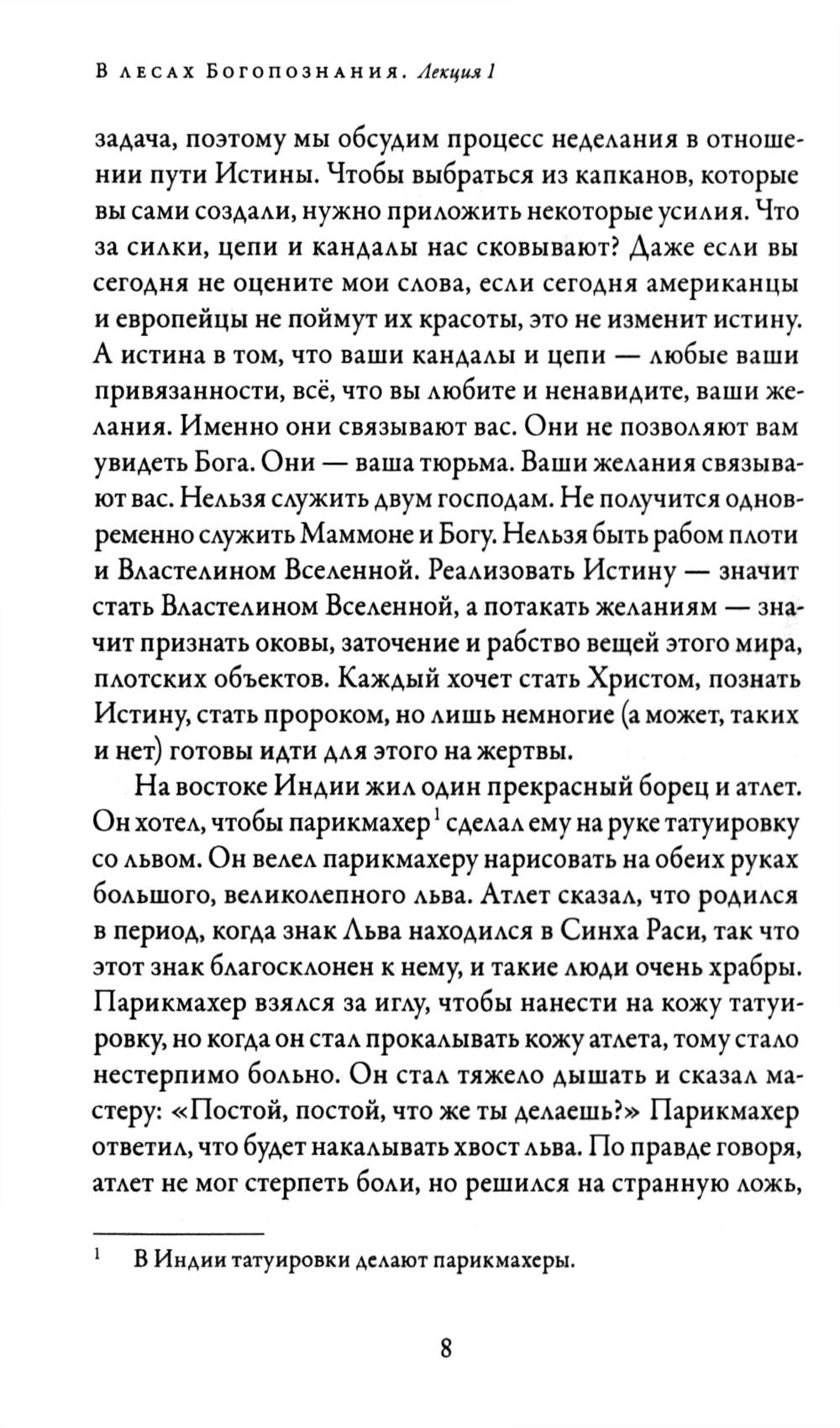 Рама Тиртха (1873-1906) - одна из ярчайших жемчужин индийского гения, высоко ценимая такими известными духовными Учителями, как Рамана Махарши, Свами Вивекананда, Свами Шивананда, Махатма Ганди, Виноба Бхаве, и многими другими. Будучи образцом просветленной жизни, он учил тому, как практиковать веданту, йогу, воплотить их в жизнь и достичь Самореализации. В этот сборник вошли: лекции, прочитанные им в 1902-1903 гг., письма и стихотворения, а также «Поклонение» (Упасана) - последняя работа, написанная его рукой. Книга послужит вдохновению тех, кто встал на духовный путь. Она также будет интересна тем, кого интересует духовная культура Индии.| Издательство | Изд. Ганга |
