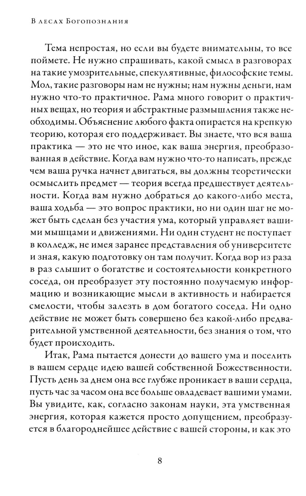 Рама Тиртха (1873-1906) - одна из ярчайших жемчужин индийского гения, высоко ценимая такими известными духовными Учителями, как Рамана Махарши, Свами Вивекананда, Свами Шивананда, Махатма Ганди, Виноба Бхаве, и многими другими. Будучи образцом просветленной жизни, он учил тому, как практиковать веданту, йогу, воплотить их в жизнь и достичь Самореализации. В этот сборник вошли лекции, прочитанные им в США и Японии в 1902-1904 гг., письма и стихотворения. Книга послужит вдохновению тех, кто встал на духовный путь. Она также будет интересна тем, кого интересует духовная культура Индии.| Издательство | Изд. Ганга |