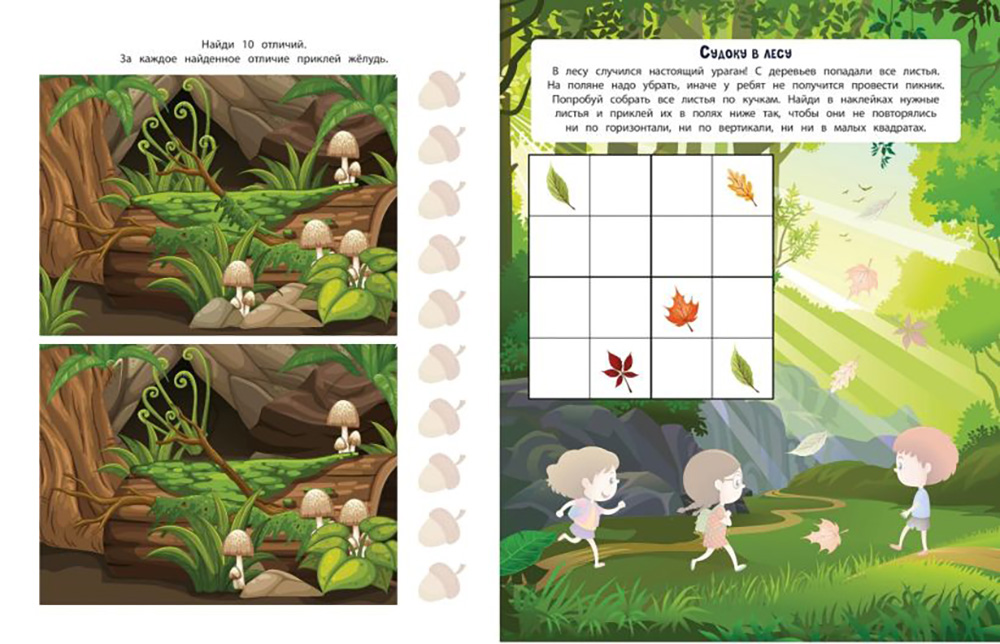 Обучающая книга-игра и более 150 ярких наклеек для любознательных озорников! Отправляйся в увлекательное путешествие! Ты узнаешь, какие бывают леса, как называются животные и птицы, которые в них обитают, найдёшь выход из запутанного лабиринта, сыграешь в лесное судоку, а ещё сможешь весело провести время с коллекцией ярких наклеек!| Издательство | Эксмо |