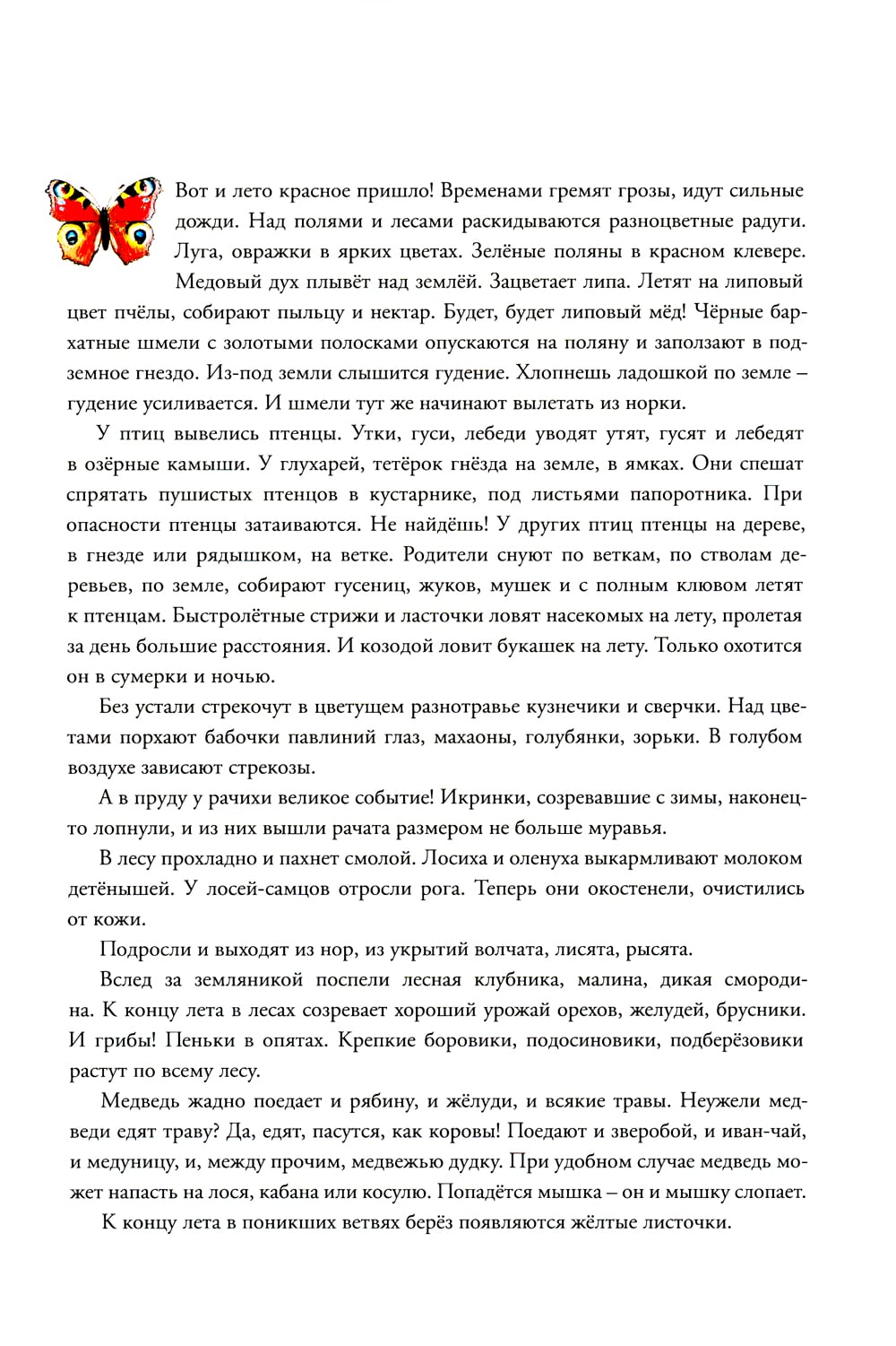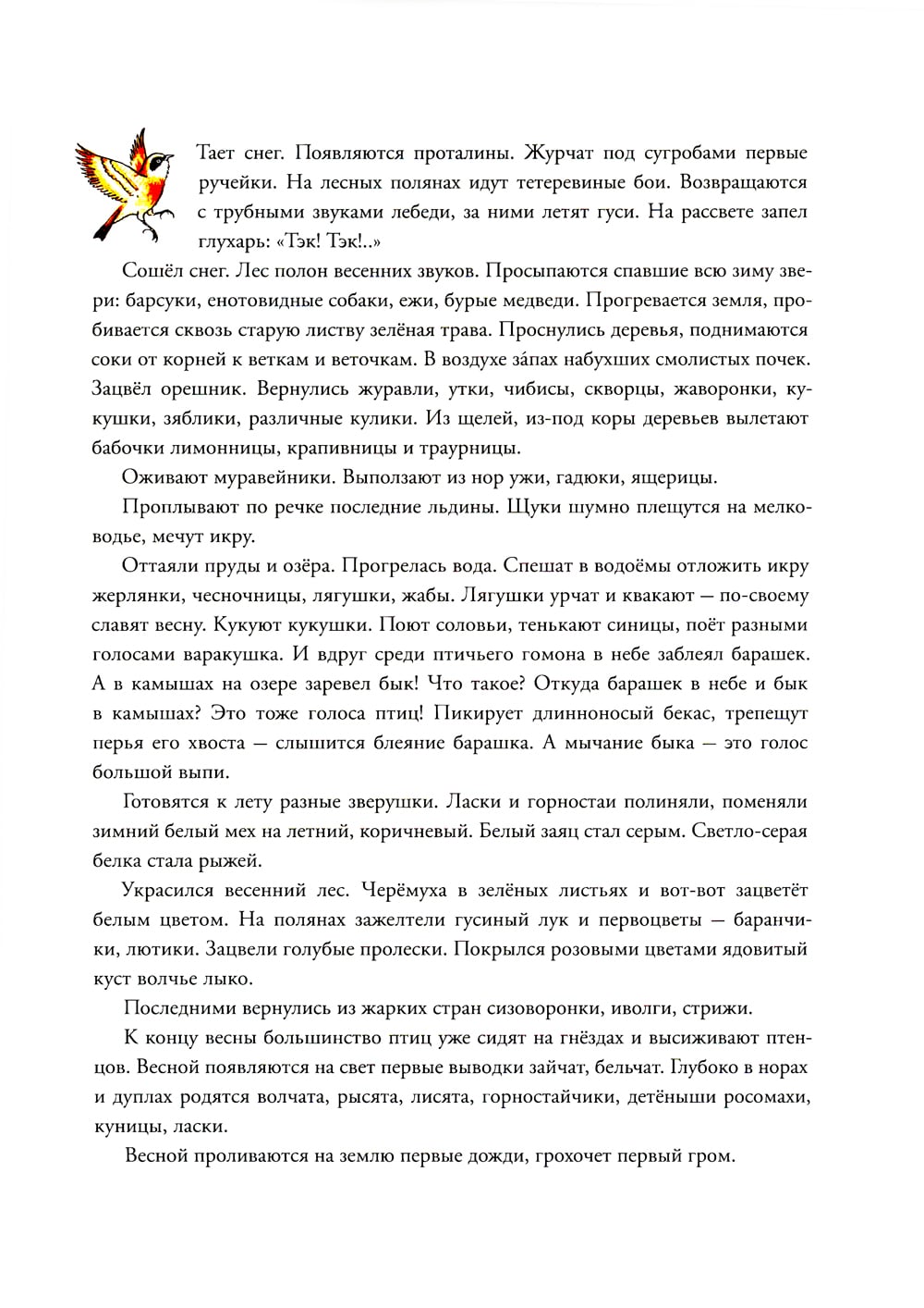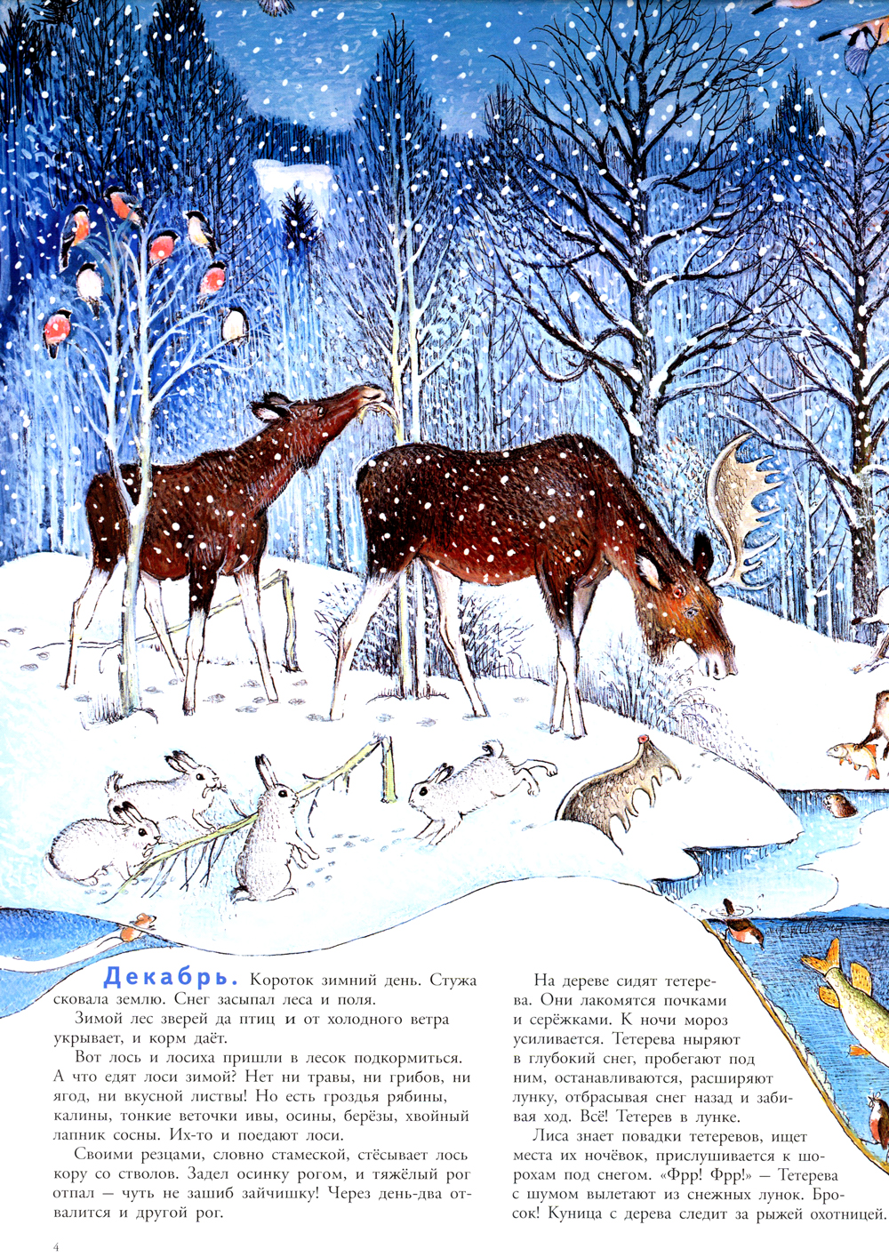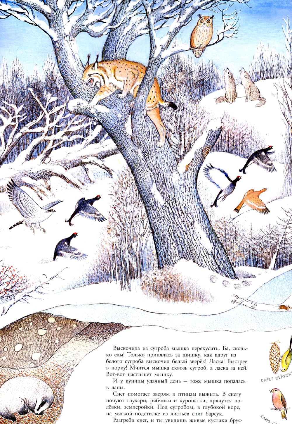 Пётр Иванович Багин - многогранный человек, талантливый художник, одинаково прекрасно владеющий и карандашом и словом, - написал и нарисовал красивую, интересную и полезную книгу-картинку - настоящую энциклопедию животных среднерусского леса. Разворотные иллюстрации, посвященные каждому месяцу в году, не просто выразительны и живописны, они ещё и абсолютно точны с зоологической точки зрения. Это настоящая прогулка по лесу - по тропкам и полянам, опушкам и пригоркам, во время которой ребёнок наблюдает, прислушивается, подмечает малейшее движение... А ещё он узнает, что обитатели леса живут непростой жизнью, вступают друг с другом в сложные отношения и действуют в соответствии со своими врождёнными инстинктами. Книга рекомендуется для чтения взрослыми детям, а также для совместного разглядывания уникальных иллюстраций, появлению которых предшествовала кропотливая исследовательская работа автора.