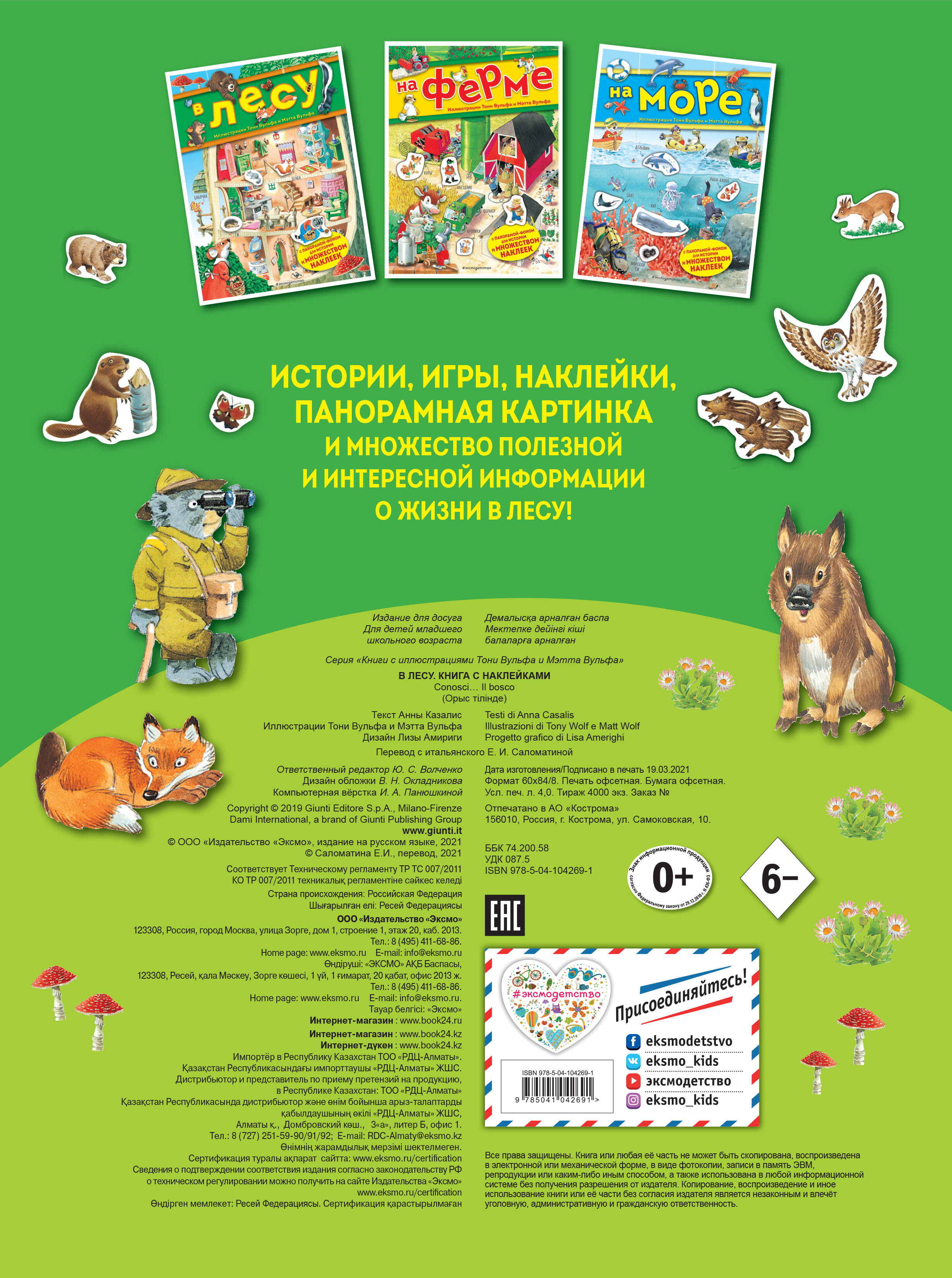 В этой книге вас ждут красочные наклейки, увлекательные истории и познавательные факты, занимательные активити и панорама-фон, позволяющая создать собственную историю. Очаровательные иллюстрации Тони Вульфа обязательно понравятся малышу и помогут узнать много интересного о жизни в лесу!| Издательство | ООО "Издательство "Эксмо" |