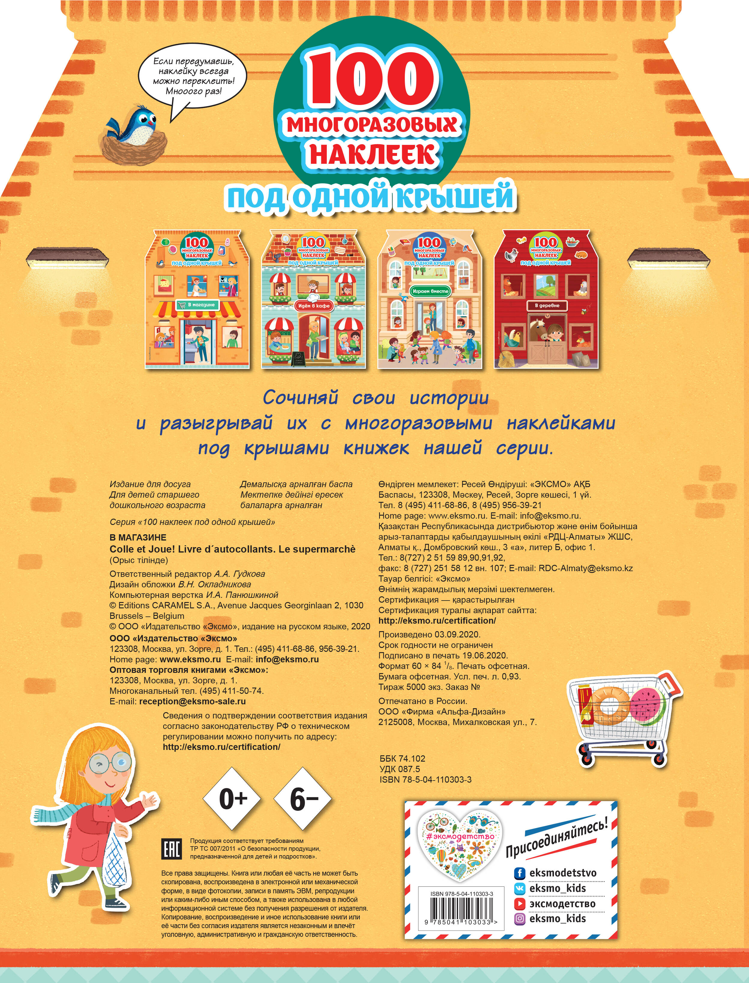 Предложите ребенку сыграть в пяти отделах магазина, используя более 100 многоразовых наклеек! Здесь не будет никаких правил - место для наклейки малыш выбирает сам. Все, что ему потребуется, это применить логику, чтобы понять, для какого отдела магазина больше подойдет наклейка, а также море фантазии, чтобы придумать замечательную историю и сыграть в нее в этой книжке. А самое главное, многоразовые налейки позволят придумывать и разыгрывать истории снова и снова. Это по-настоящему многоразовая книжка, которая не только поможет развить логику и мелкую моторику, познакомит ребенка с тем, как устроен и работает магазин, позволит узнать или повторить названия продуктов, но и подарит долгие увлекательные часы досуга.| Издательство | ООО "Издательство "Эксмо" |