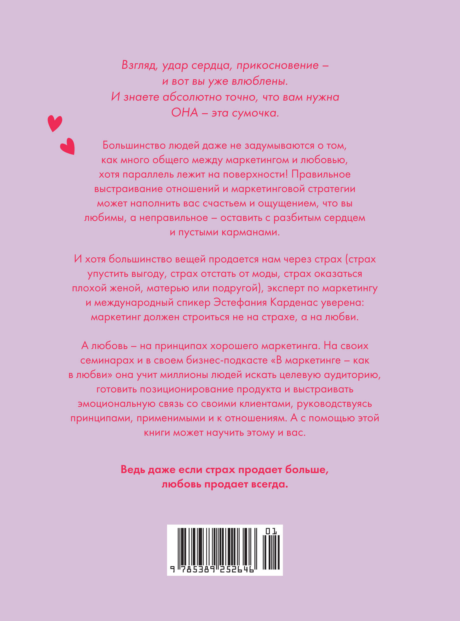 Взгляд, удар сердца, прикосновение - и вот вы уже влюблены. И знаете абсолютно точно, что вам нужна ОНА - эта сумочка. Большинство людей даже не задумываются о том, как много общего между маркетингом и любовью, хотя параллель лежит на поверхности! Правильное выстраивание отношений и маркетинговой стратегии может наполнить вас счастьем и ощущением, что вы любимы, а неправильное - оставить с разбитым сердцем и пустыми карманами. И хотя большинство вещей продается нам через страх (страх упустить выгоду, страх отстать от моды, страх оказаться плохой женой, матерью или подругой), эксперт по маркетингу и международный спикер Эстефания Карденас уверена: маркетинг должен строиться не на страхе, а на любви. А любовь - на принципах хорошего маркетинга. На своих семинарах и в своем бизнес-подкасте "В маркетинге - как в любви" она учит миллионы людей искать целевую аудиторию, готовить позиционирование продукта и выстраивать эмоциональную связь со своими клиентами, руководствуясь принципами, применимыми и к отношениям. А с помощью этой книги может научить этому и вас. Ведь даже если страх продает больше, любовь продает всегда.| Издательство | Азбука-Аттикус Издат.группа ООО |