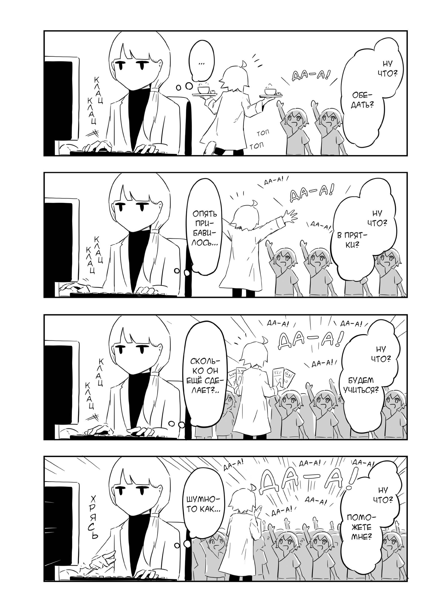 Манга Avogado6 впервые на русском языке! Серьёзную Нану-тян и гениального, но беззаботного Яцу-куна воспитал робот. Они вели спокойную жизнь учёных-исследователей: сутки напролёт проводили в лаборатории и выводили армию клонов. Однако счастье не длится вечно: у Яцу-куна обнаруживается серьёзный неизлечимый недуг. Чтобы выиграть время на поиски лечения, Нана-тян замораживает друга в криокамере. Несколько десятков лет спустя молодой учёный просыпается и видит перед собой постаревшую Нану-тян, толпу своих новых клонов и мир, разрушенный жестокой войной. Нана-тян мечтает создать роботов-очистителей для спасения планеты и человечества. Но смерть настигает её раньше. И теперь Яцу-кун и его клоны намерены продолжить её дело. Но не станет ли это новой угрозой для людей?| Издательство | ООО "Издательство "Эксмо" |
