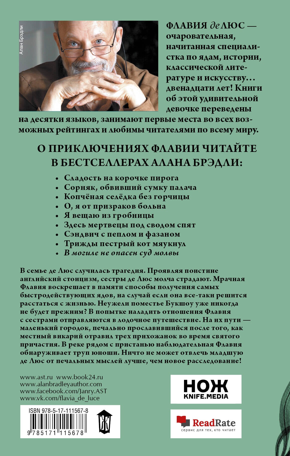 «В могиле не опасен суд молвы» ‒ новый детектив известного писателя Алана Брэдли, который продолжает повествовать о расследованиях английской девочки-сыщицы Флавии де Люс. После смерти отца семейства де Люс между Флавией и сестрами окончательно рухнуло то шаткое подобие мира, которое они старались поддерживать ради отца. В попытке найти способ примирения девочки отправляются в небольшое путешествие по Англии в сопровождении верного слуги Доггера. И пока Флавия методично воскрешает в памяти самые эффектные способы расстаться с жизнью, ее настигает новое расследование прямо во время скучнейшей речной прогулки! Вместо рыбы девочка вылавливает из реки удивительно хорошо сохранившийся труп неизвестного юноши. Ее страсть к исследованиям тайн химии и загадок человеческой мысли опять побеждает, и Флавия решительно берется за разгадку смерти своей находки. Похоже, в прошлом этого юноши скрывается немало секретов, которые тесно связаны с судьбами жителей маленького английского городка, и смерть талантливого актера лишь верхушка большой истории. Встречайте новое расследование Флавии де Люс! Для всех поклонников остроумных детективов.| Издательство | Издательство "АСТ" |