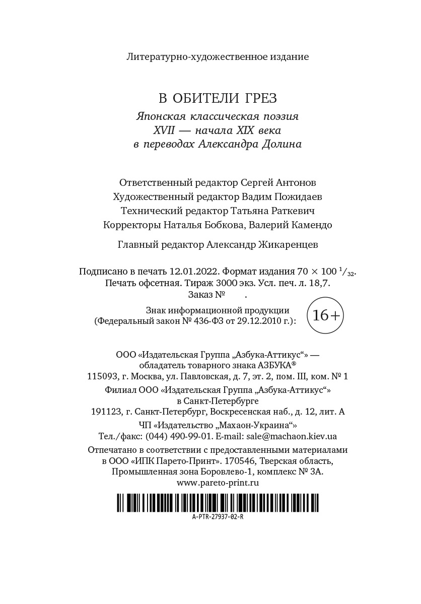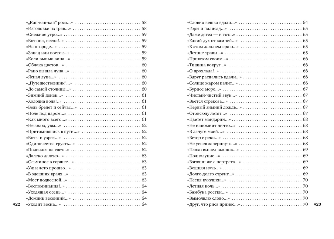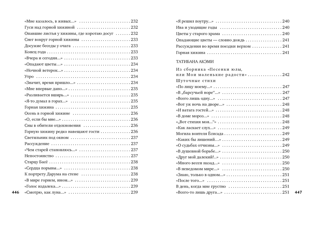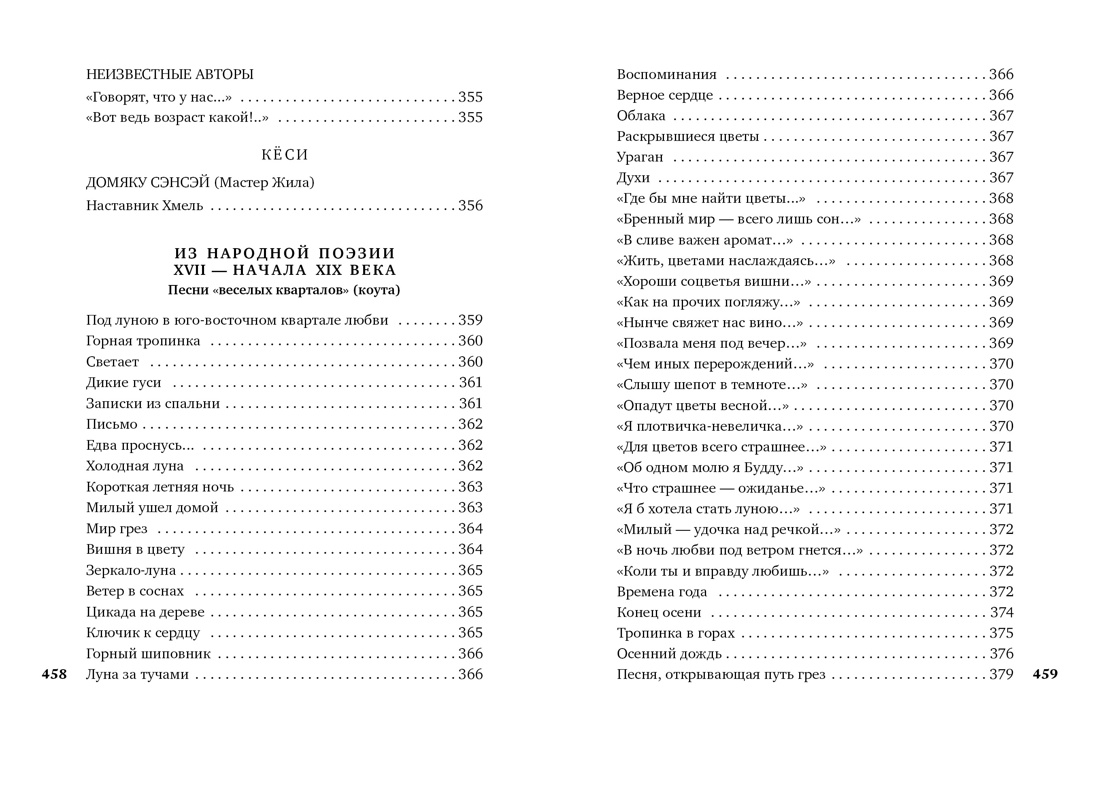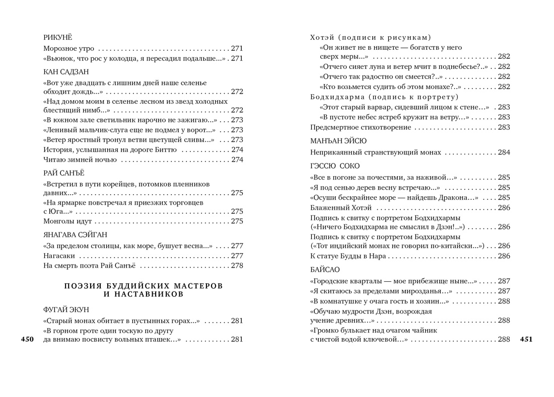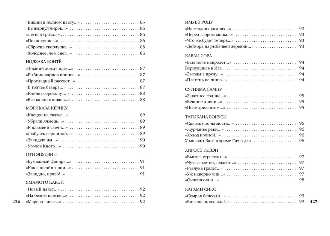 В антологию, подготовленную известным востоковедом и переводчиком японской поэзии Александром Долиным, включены классические шедевры знаменитых поэтов позднего Средневековья (XVII - начала XIX в.). Наряду с такими популярными именами, как Мацуо Басё, Ёса-но Бусон, Кобаяси Исса, Мацунага Тэйтоку, Ихара Сайкаку, Камо Мабути, Одзава Роан Рай Санъё или инок Рёкан, читатель найдет в книге немало новых авторов, чьи творения украшают золотой фонд японской и мировой литературы. В сборнике представлена богатая палитра поэтических жанров: философские и пейзажные трехстишия хайку, утонченные пятистишия вака (танка ), образцы лирической и дидактической поэзии на китайском канси , а также стихи дзэнских мастеров и наставников, в которых тонкость эстетического мироощущения сочетается с эмоциональной напряженностью непрестанного самопознания. Ценным дополнением к шедеврам классиков служат подборки юмористической поэзии (сэнрю, кёка, хайкай-но рэнга), а также переводы фольклорных песен-коута, сложенных обитательницами «веселых кварталов». Книга воссоздает историческую панораму японской поэзии эпохи Эдо в ее удивительном жанрово-стилистическом разнообразии и знакомит читателя с крупнейшими стихотворцами периода японского культурного ренессанса, растянувшегося на весь срок самоизоляции Японии. Издание снабжено вступительной статьей и примечаниями.| Издательство | Азбука |