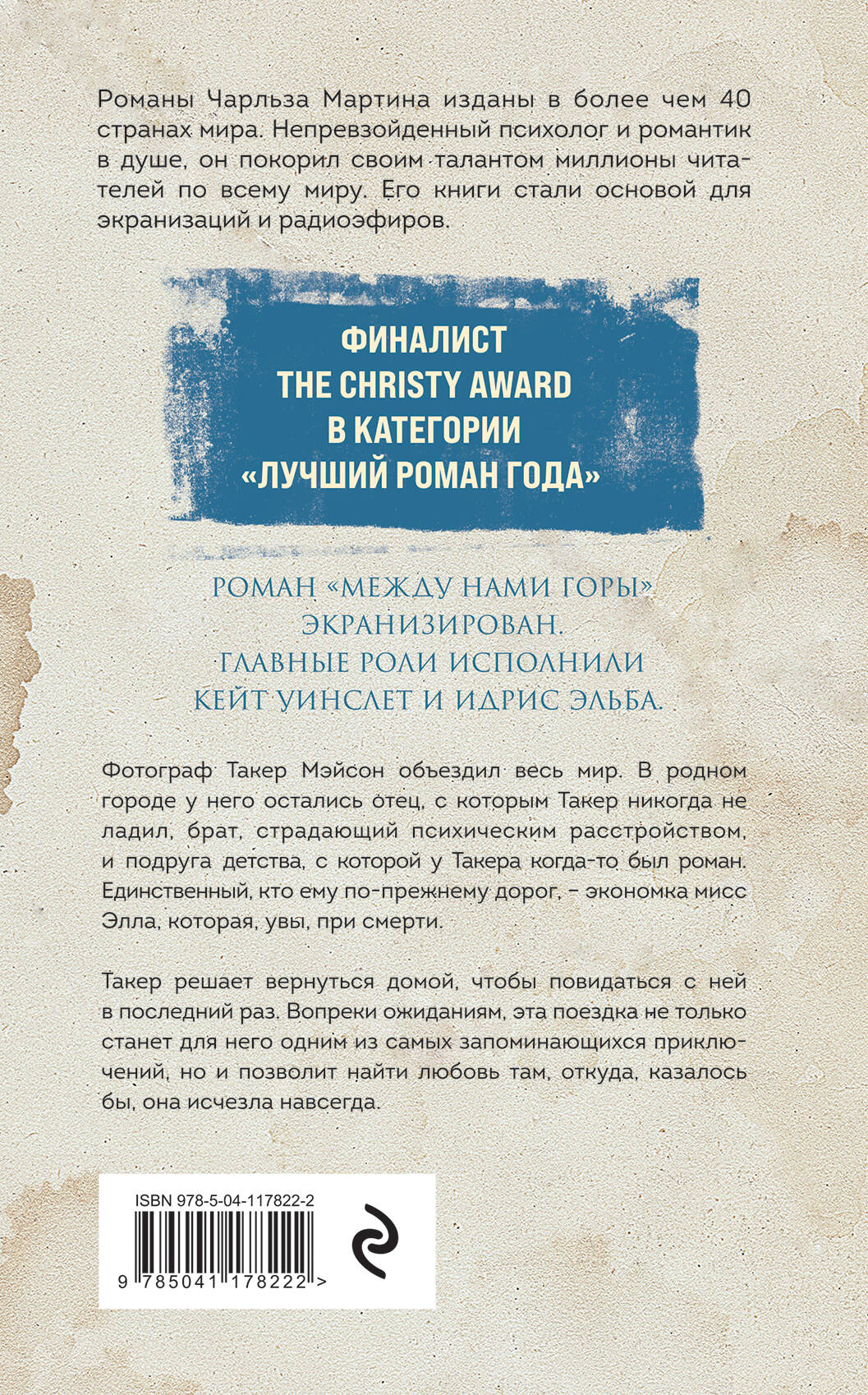 «Каждое слово, каждый образ в романах Мартина на своем месте. Кажется, он создает прекрасную картину в прозе». - RT Book Reviews Романы Чарльза Мартина изданы в более чем 40 странах мира. Непревзойденный психолог и романтик в душе, он покорил своим талантом миллионы читателей по всему миру. Его книги стали основой для экранизаций и радиоэфиров. Финалист The Christy Award в категории «Лучший роман года». Роман «Между нами горы» экранизирован. Главные роли исполнили Кейт Уинслет и Идрис Эльба.| Издательство | ООО "Издательство "Эксмо" |