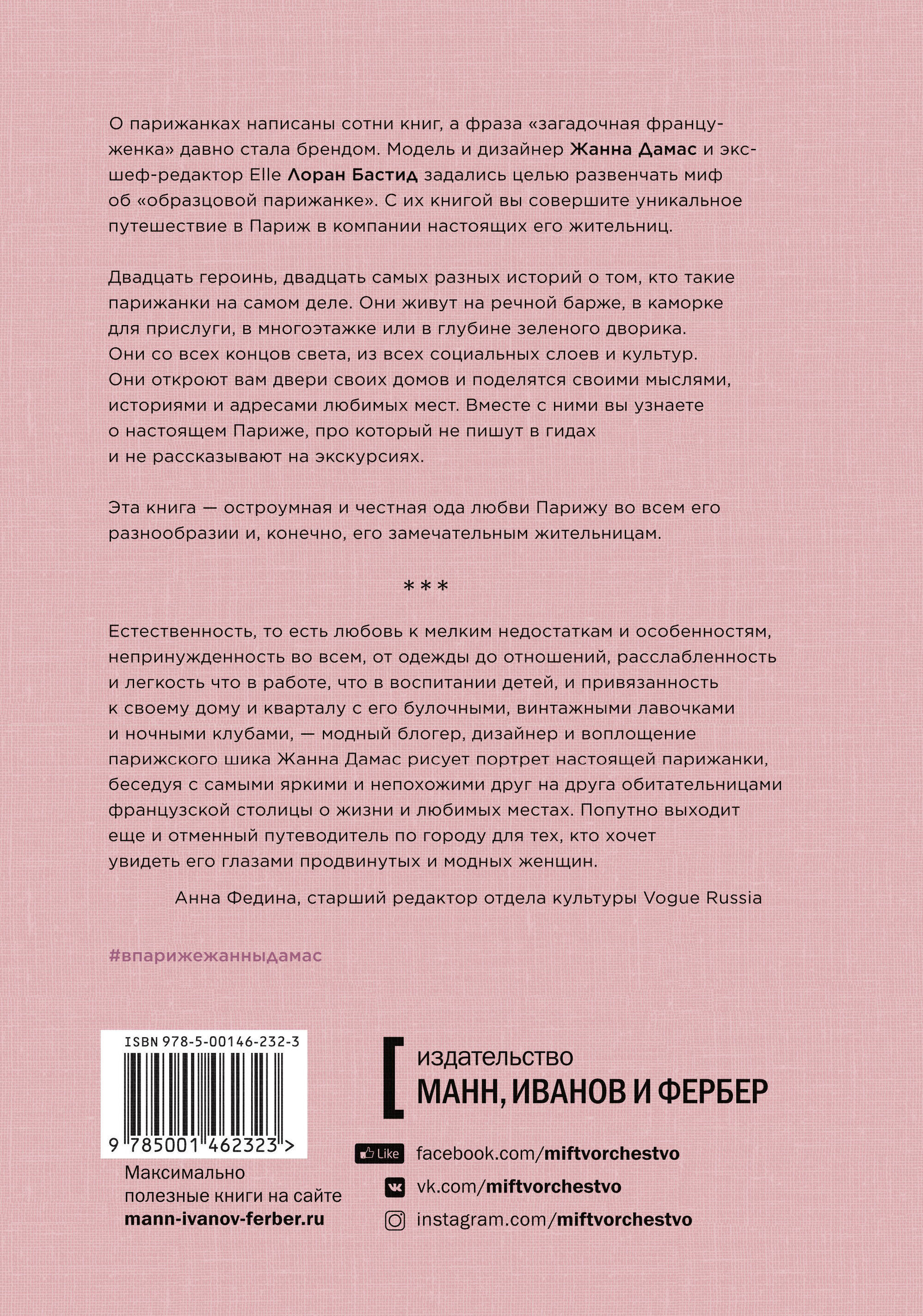Эта книга - признание в любви Парижу во всем его разнообразии. 20 ярких, модных, дерзких и женственных парижанок откроют перед читателями двери своих домов и поделятся мыслями о жизни, историями и адресами любимых и интересных мест.| Издательство | Манн, Иванов и Фербер |