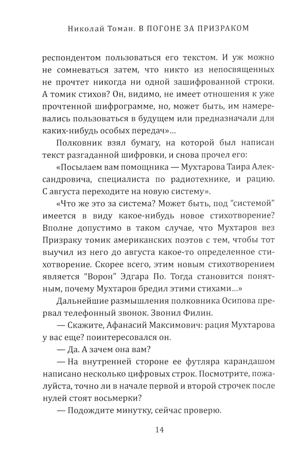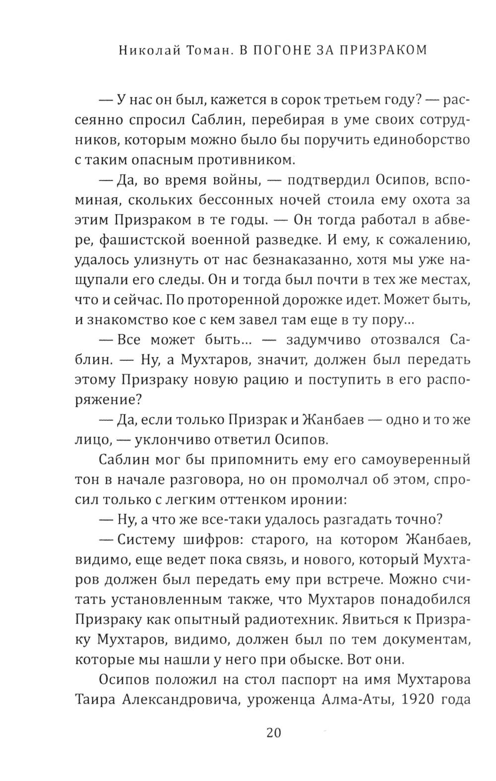 Николай Владимирович Томан (1911-1974) - знаменитый советский писатель-фронтовик, выдающийся мастер приключенческой литературы. Он умел удивлять читателей, изобретая новые грани популярного жанра. Идет война. Не только на полях сражений, но и тайная война, противостояние разведок и контрразведок. Чекисты делают все, чтобы разгадать уловки хитрого и опытного агента гитлеровцев, стремящегося сорвать подготовку советских войск к наступлению... Майору Ершову поручено обезвредить знаменитого шпиона, которого называют «вторым полковником Лоуренсом»... Удастся ли обезвредить Призрака? Книга, запечатлевшая стиль эпохи, станет подарком для всех ценителей шпионского романа и советского ретро.| Издательство | Родина |