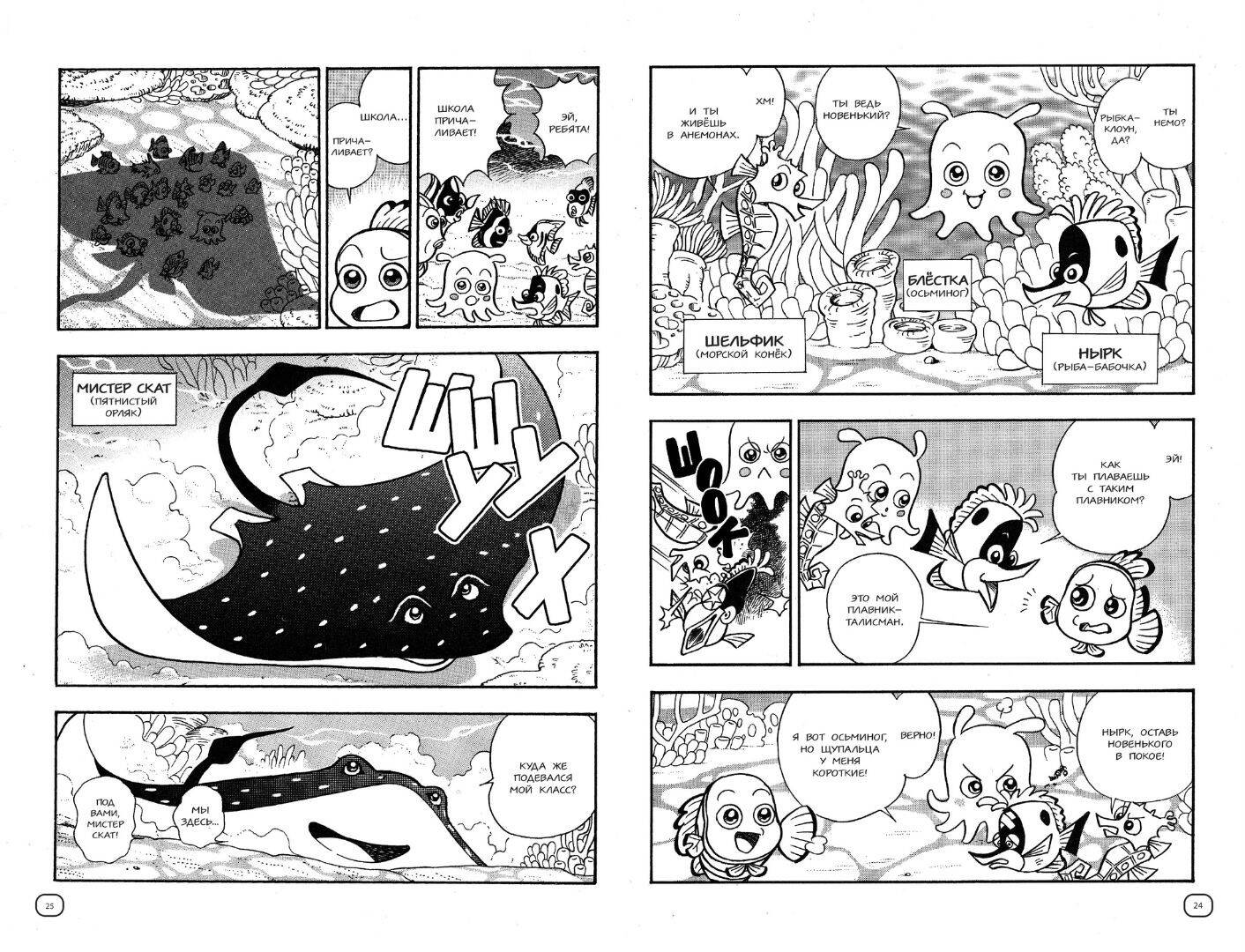 Встречайте любимую историю "В поисках Немо" от анимационной студии Disney теперь в формате манги! Немо - очень пытливый и любознательный малёк рыбы-клоуна. Но из-за того, что он родился с маленьким плавником, Марлин, его отец, всё ему запрещает. В первый же день в школе в знак протеста Немо заплывает в открытый океан и тут же попадает в неприятности. Его увозят далеко от родного дома и его друзей. Тем временем Марлин отважно пускается на поиски своего единственного сына. Заручившись помощью новы океанических друзей, ему предстоит переплыть весь океан, чтобы вернуть Немо домой.| Издательство | ООО "Издательство "Эксмо" |