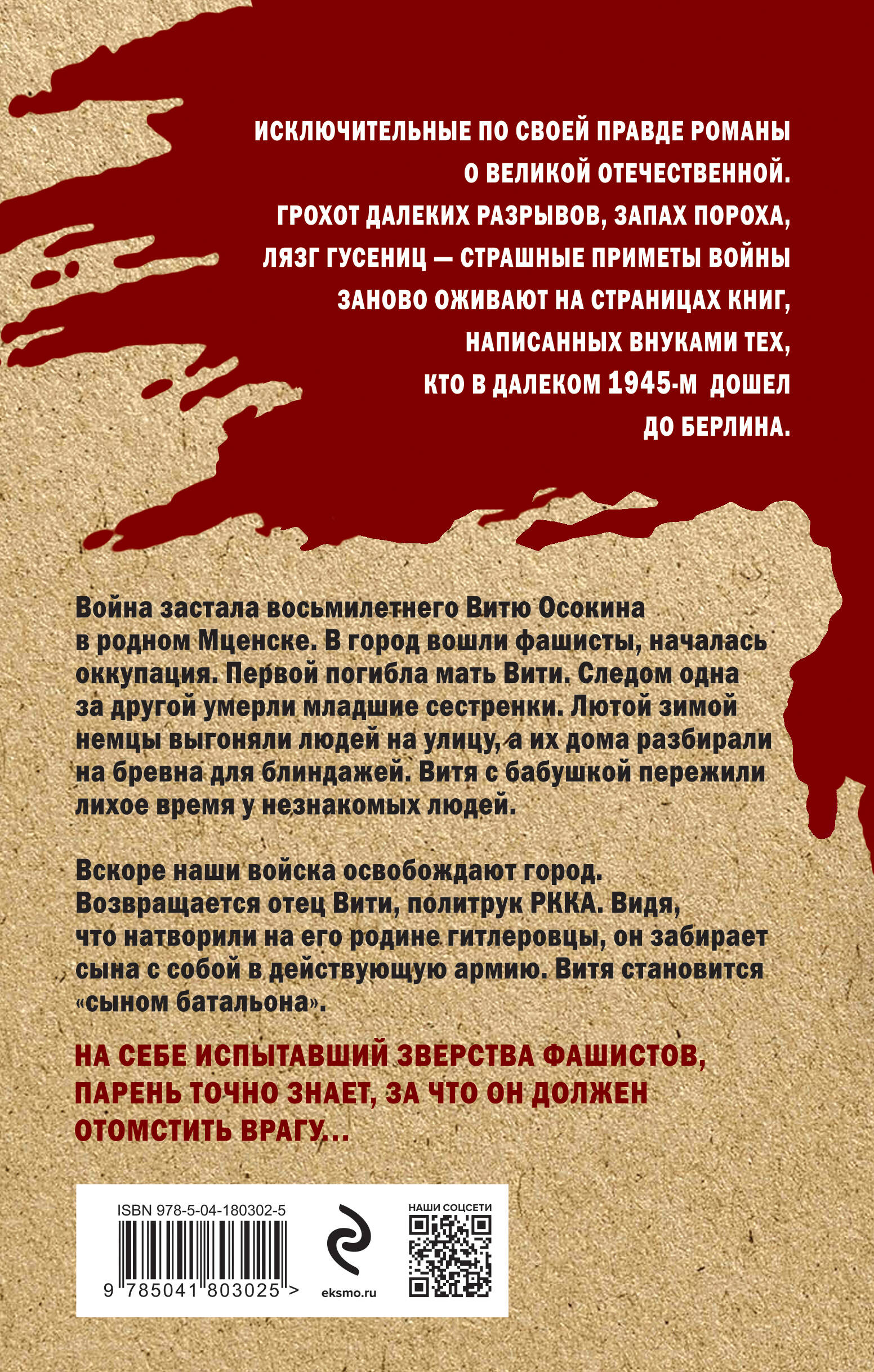 Исключительные по своей правде романы о Великой Отечественной. Грохот далеких разрывов, запах пороха, лязг гусениц - страшные приметы войны заново оживают на страницах книг, написанных внуками тех, кто в далеком 1945-м дошел до Берлина. Война застала восьмилетнего Витю Осокина в родном Мценске. В город вошли фашисты, началась оккупация. Первой погибла мать Вити. Следом одна за другой умерли младшие сестренки. Лютой зимой немцы выгоняли людей на улицу, а их дома разбирали на бревна для блиндажей. Витя с бабушкой пережили лихое время у незнакомых людей. Вскоре наши войска освобождают город. Возвращается отец Вити, политрук РККА. Видя, что натворили на его родине гитлеровцы, он забирает сына с собой в действующую армию. Витя становится «сыном батальона». На себе испытавший зверства фашистов, парень точно знает, за что он должен отомстить врагу…| Издательство | ООО "Издательство "Эксмо" |