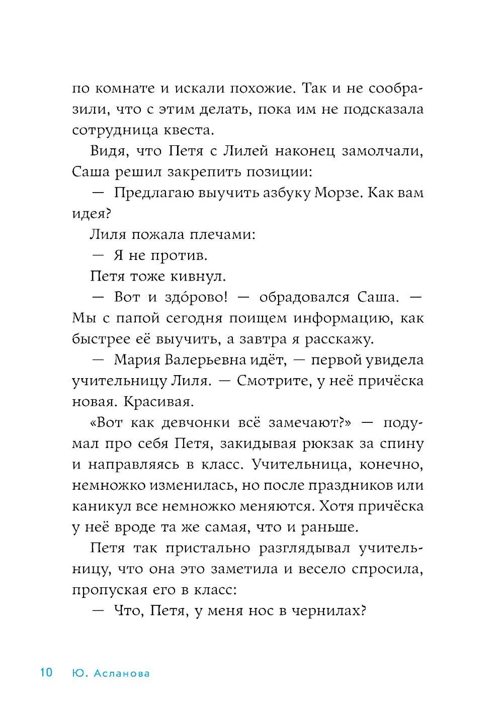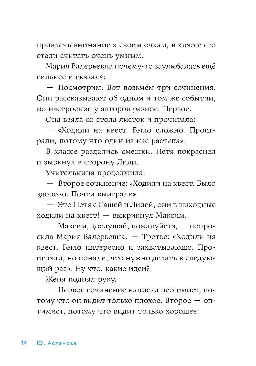 Что важнее в школе: уроки, перемены или каникулы? В 4 «А» классе каждый день - приключение. Ребята репетируют сказку для спектакля, устраивают квесты и даже спасают мир во время каникул. Петя, Саша и Лиля - настоящая команда, они учатся доверять друг другу и верить в себя. Продолжение повести «А что там в школе?» Юлии Аслановой понравится младшим школьникам и их родителям, ищущим добрые истории о дружбе и смелости.| Издательство | Альпина Паблишер |