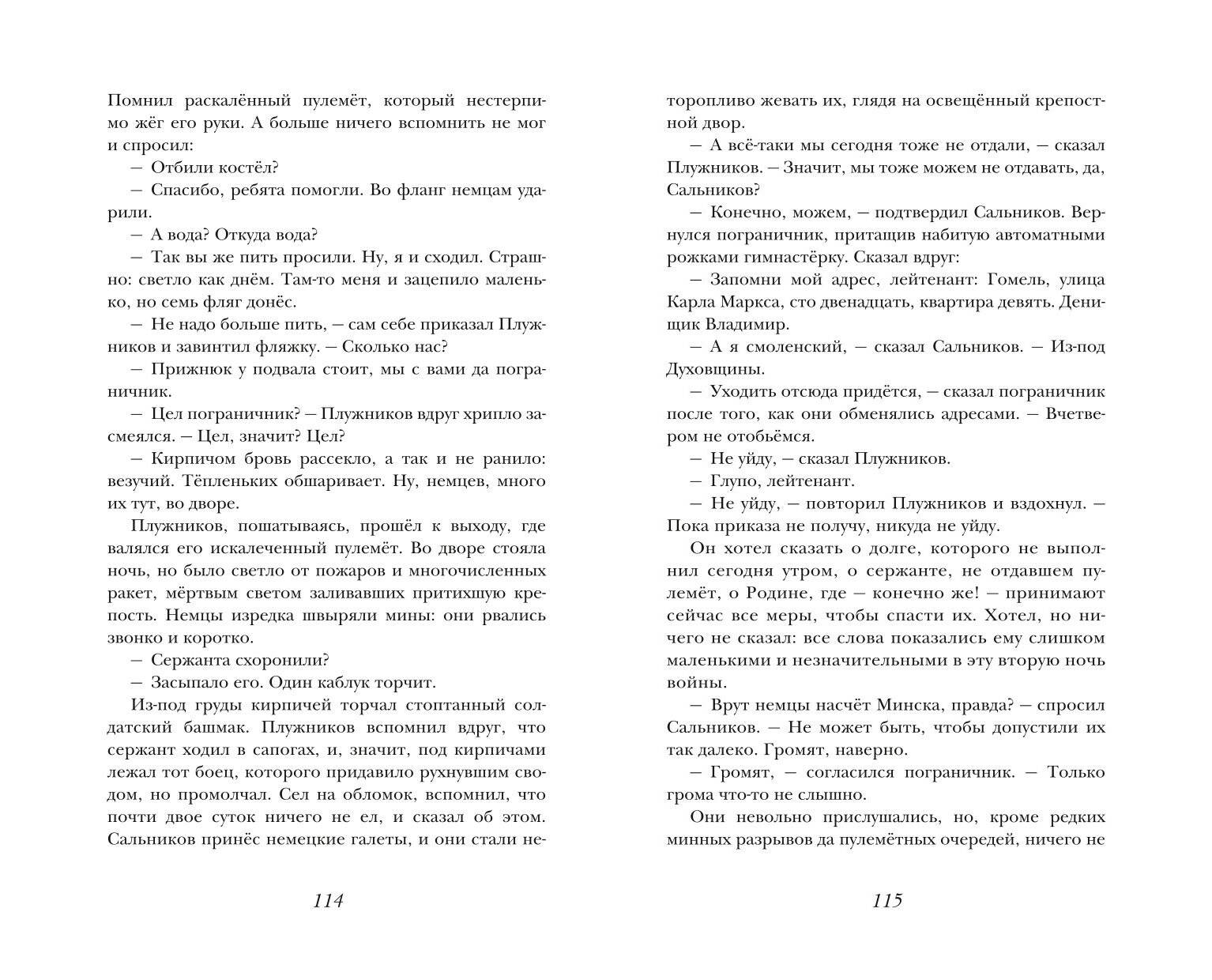 Издание в твёрдом переплёте. В оформлении использована металлизированная плёнка. Белая бумага. Чёткий удобочитаемый шрифт. Роман писателя-фронтовика Бориса Львовича Васильева «В списках не значился» - это краткая история целого поколения, ещё при жизни ставшего легендой. Юный лейтенант Коля Плужников прибывает в Брестскую крепость поздним вечером 21 июня 1941 года. Он так и не успеет доложить о своём прибытии и попасть в списки личного состава крепости. Но его первый и последний бой продлится девять месяцев и станет тем подвигом, который «зреет медленно, незримо наливаясь силой, чтобы однажды взорваться ослепительным пламенем, всполохи которого ещё долго светят грядущим поколениям». Свет этого яркого пламени по-прежнему необходим всем живущим. Книга дважды экранизирована.| Издательство | ООО "Издательство "Эксмо" |
