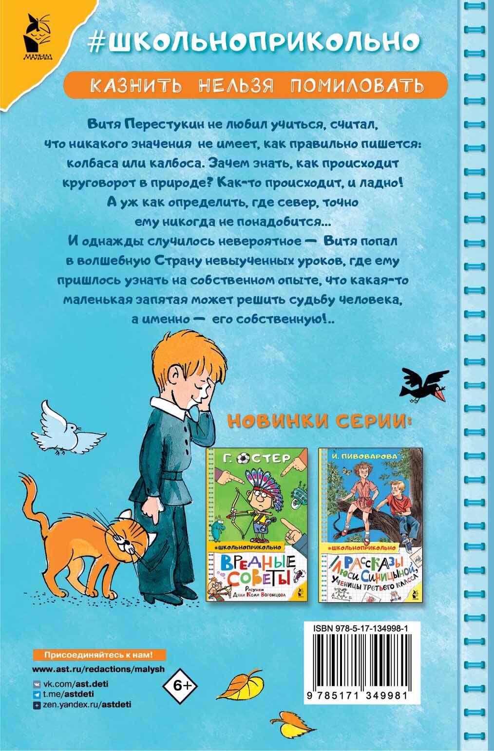 Витя Перестукин не любил учиться, считал, что никакого значения не имеет, как правильно пишется: колбаса или калбоса. Зачем знать, как происходит круговорот в природе? Как-то происходит, и ладно! А уж как определить, где север, точно ему никогда не понадобится... И однажды случилось невероятное - Витя попал в волшебную Страну невыученных уроков, где ему пришлось узнать на собственном опыте, что какая-то маленькая запятая может решить судьбу человека, а именно - его собственную!..| Издательство | ИЗДАТЕЛЬСТВО "АСТ" |