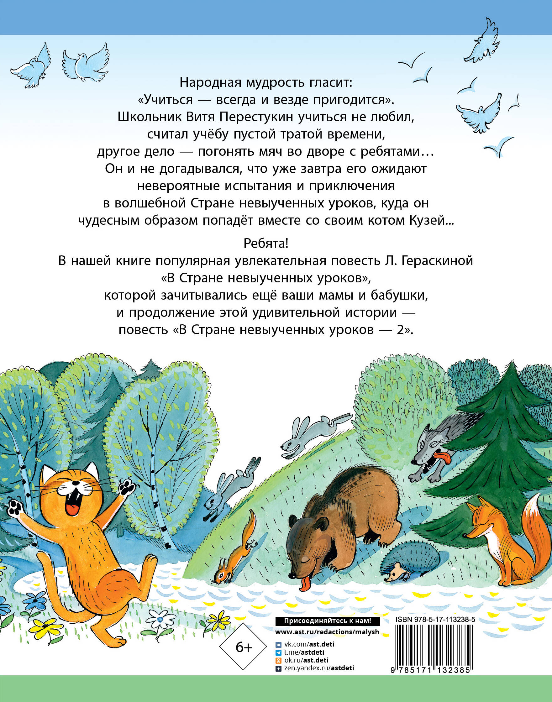 В книгу вошли две сказочные повести Л. Гераскиной: "В Стране невыученных уроков" и "В Стране невыученных уроков-2". Первая повесть была издана более полувека назад и сразу стала очень популярной у маленьких читателей. В волшебной стране двоечнику Вите Перестукину предстоит решить свою судьбу, поставив одну несчастную запятую в предложении казнить нельзя помиловать в нужном месте… Быть грамотным, любить родной язык, уметь считать - важно. Но ещё важнее уметь сопереживать и ценить дружбу. Вот что дети усвоят, читая добрые, весёлые и поучительные сказочные истории. Иллюстрации в книге народного художника РФ В.Чижикова. Для детей младшего школьного возраста.