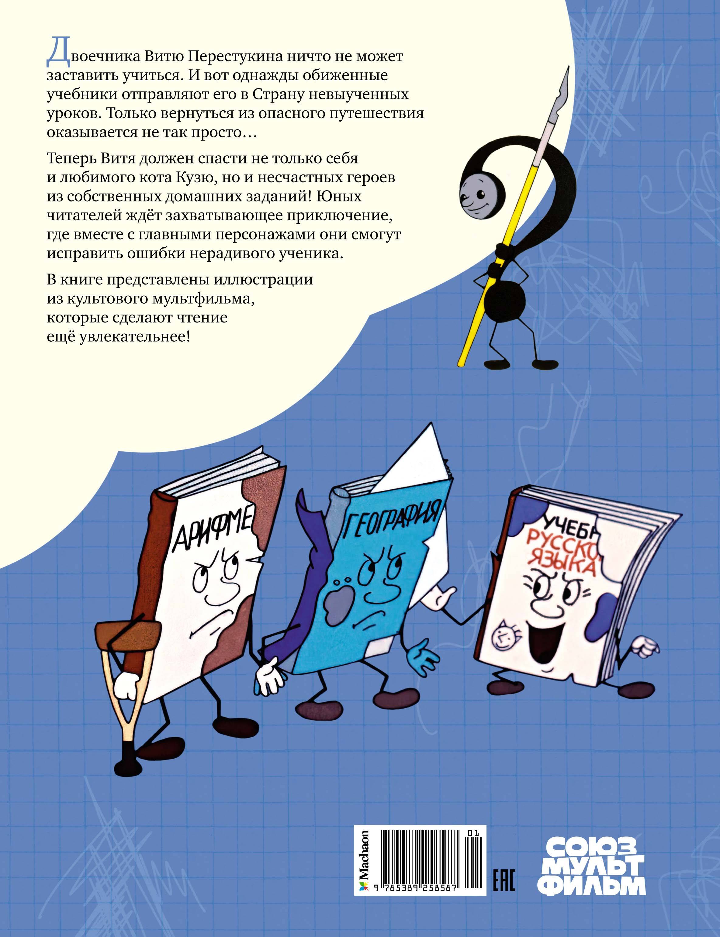 Двоечника Витю Перестукина ничто не может заставить учиться. И вот однажды обиженные учебники отправляют его в Страну невыученных уроков. Только вернуться из опасного путешествия оказывается не так просто… Теперь Витя должен спасти не только себя и любимого кота Кузю, но и несчастных героев из собственных домашних заданий! Юных читателей ждёт захватывающее приключение, где вместе с главными персонажами они смогут исправить ошибки нерадивого ученика. В книге представлены иллюстрации из культового мультфильма, которые сделают чтение ещё увлекательнее!| Издательство | Азбука-Аттикус Издат.группа ООО |