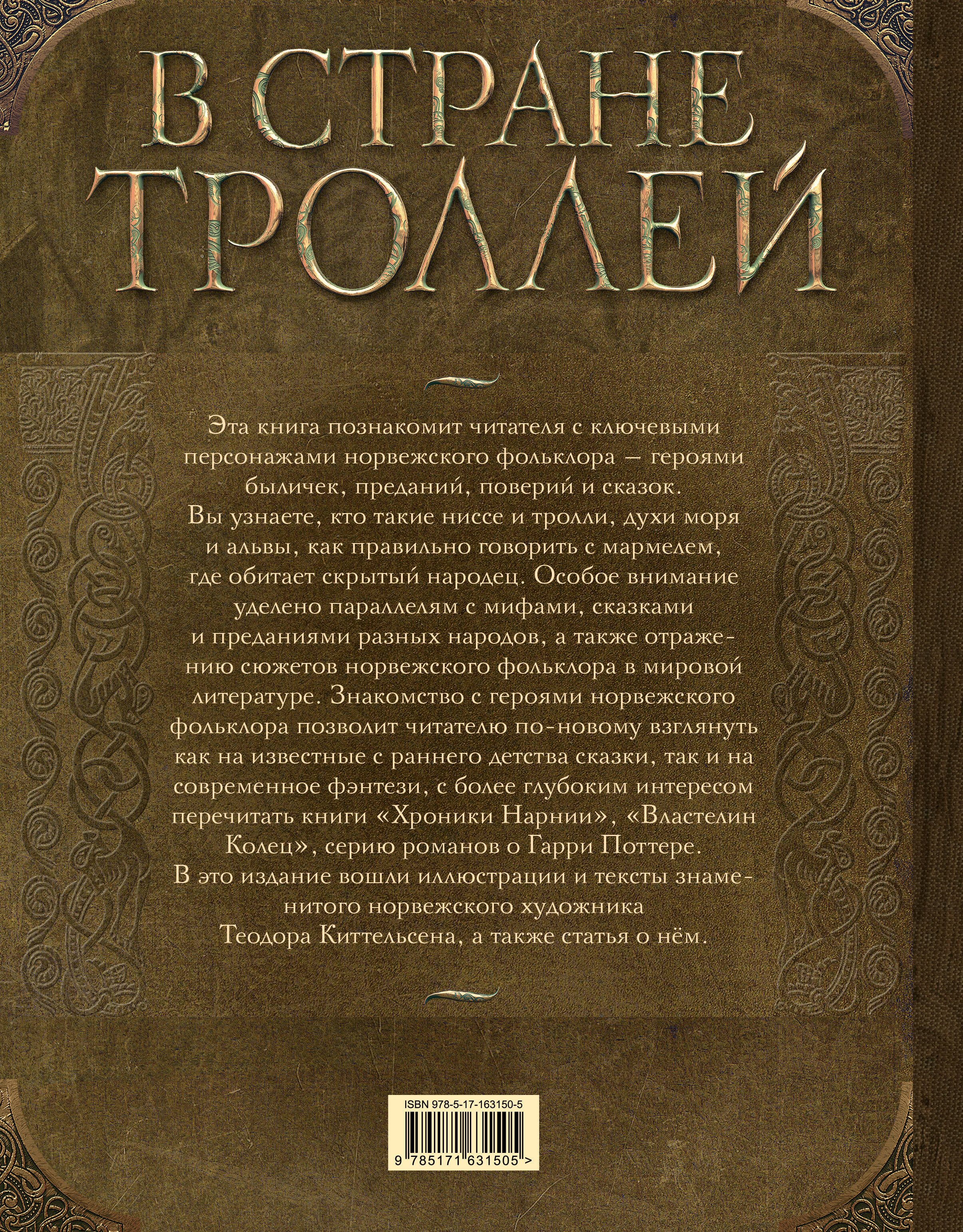 Эта книга познакомит читателя с ключевыми персонажами норвежского фольклора - героями быличек, преданий, поверий и сказок. Вы узнаете, кто такие ниссе и тролли, духи моря и альвы, как правильно говорить с мармелем, где обитает скрытый народец. Особое внимание уделено параллелям с мифами, сказками и преданиями разных народов, а также отражению сюжетов норвежского фольклора в мировой литературе. Знакомство с героями норвежского фольклора позволит читателю по-новому взглянуть как на известные с раннего детства сказки, так и на современное фэнтези, с более глубоким интересом перечитать книги "Хроники Нарнии", "Властелин Колец", серию романов о Гарри Поттере. В это издание вошли иллюстрации и тексты знаменитого норвежского художника Теодора Киттельсена, а также статья о нём. Для среднего школьного возраста.| Издательство | Издательство "АСТ" |