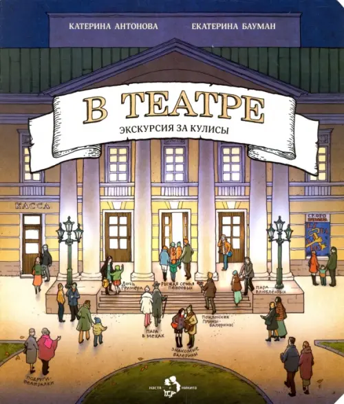 Знакомьтесь с сотрудниками и зрителями, ищите их на каждом развороте и сочиняйте увлекательные истории - о приме-балерине и её застенчивом поклоннике, о рыжей и неугомонной семье Петровых, о задумчивом директоре театра, об уборщице, которая мечтает стать артисткой, и о других героях. Изучайте подписи под рисунками - найдите рампу, парик Мальвины и даже театрального кота.