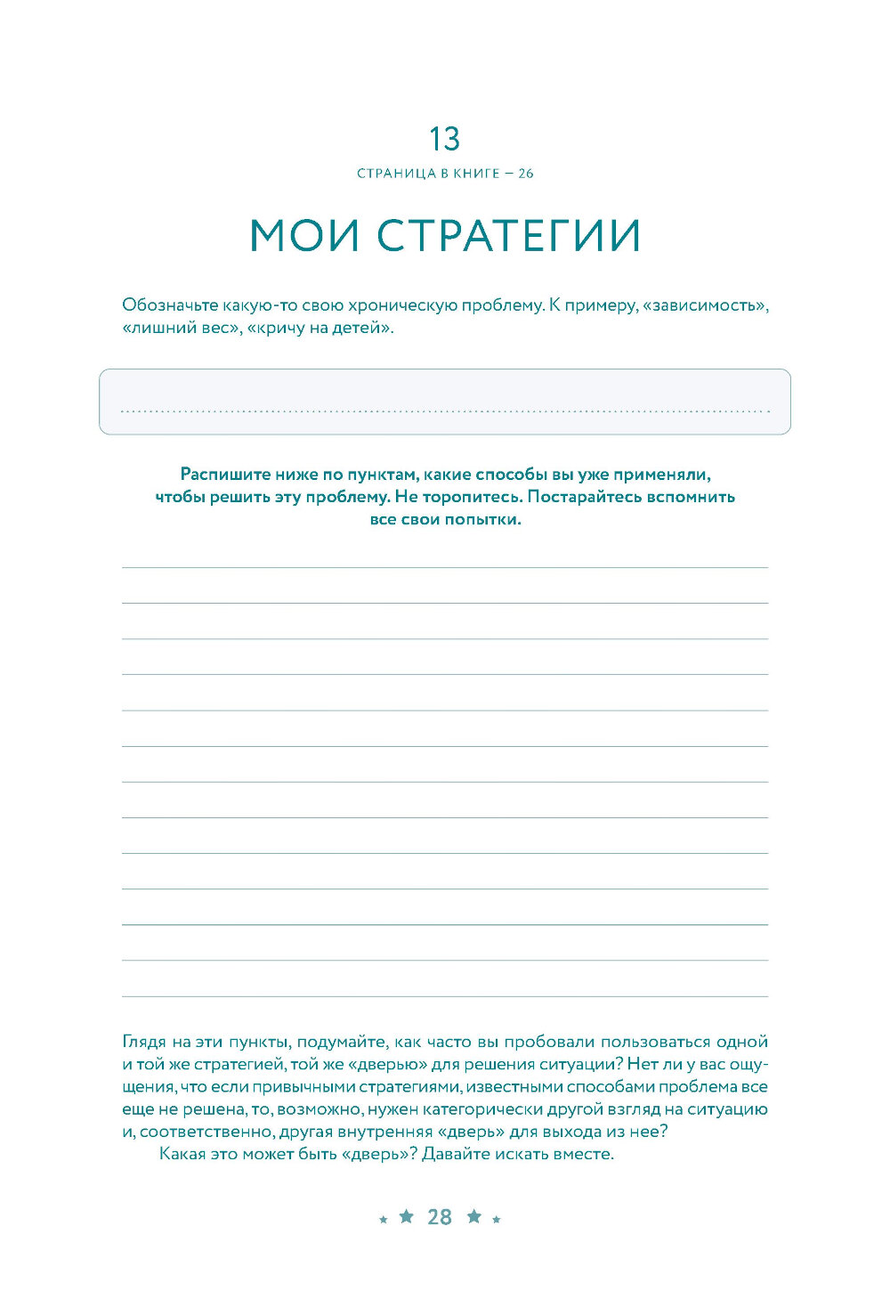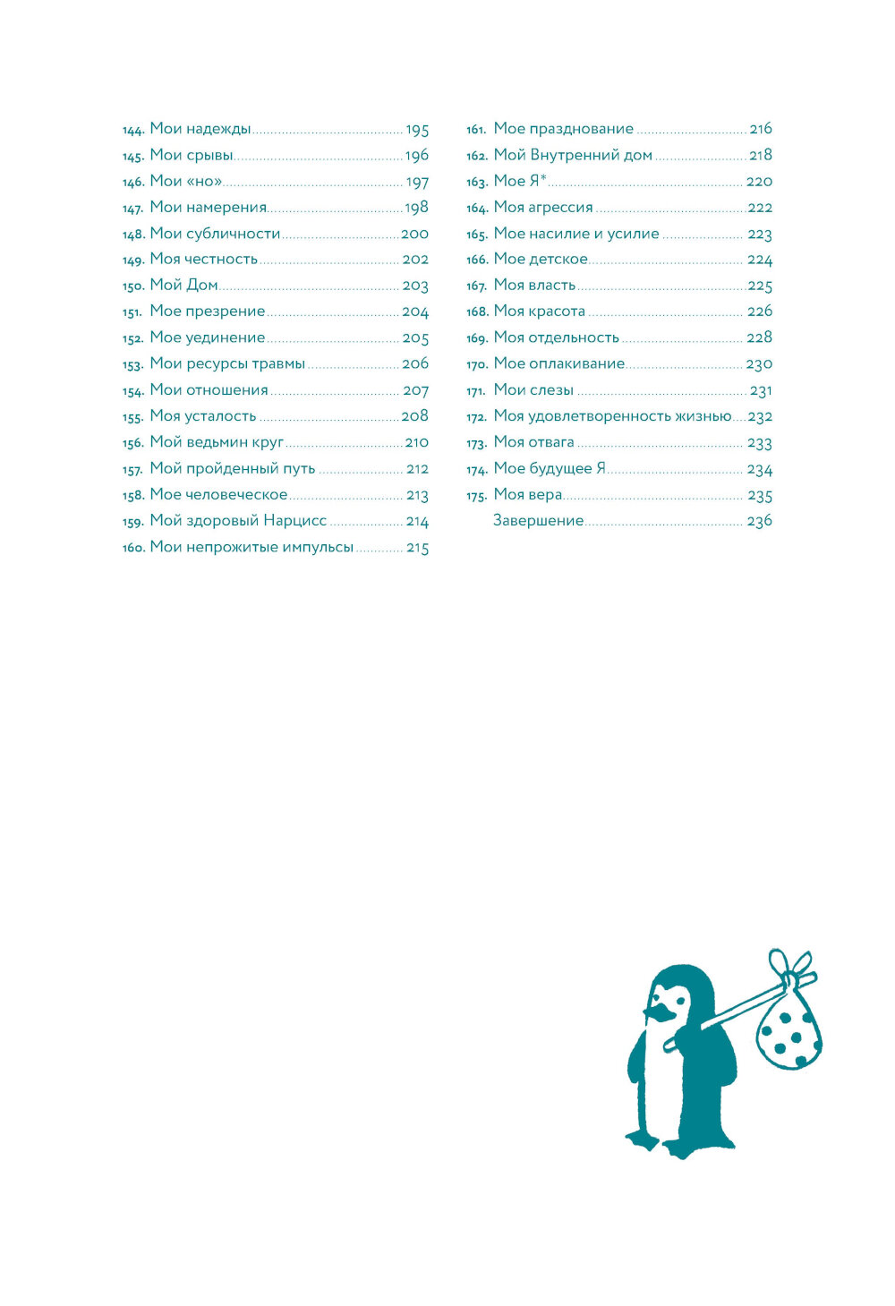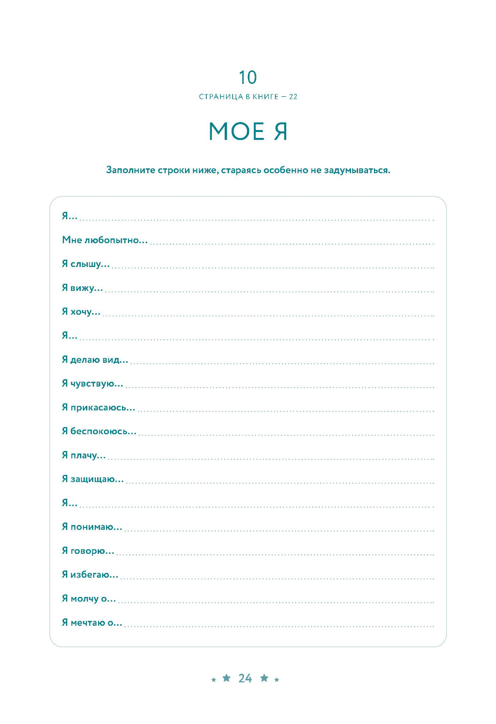 Эта рабочая тетрадь связана с книгой «В тебе есть всё. Психология полноты жизни»: там - 175 текстов-наблюдений-рефлексий-осознаний, здесь - 175 заданий для ваших наблюдений-рефлексий-осознаний. Задания по нумерации соотносятся с текстами книги. У вопросов в этой тетради нет и не может быть конкретных «правильных» ответов, но в конце каждого задания есть предложение заметить, назвать, пережить появляющиеся только ваши чувства. Если какое-то задание вам не удается сделать - не беда, можно вернуться к нему позже или вообще пропустить. Задания в тетради можно выполнять как автономно, так и параллельно с чтением книги (прочли текст - заполнили соответствующее ему задание), а еще есть вариант двигаться в каком-то только вашем интуитивном порядке (к примеру, открыли утром книгу с текстами на случайной странице - прочли текст и сделали соответствующее ему задание в рабочей тетради).| Издательство | Альпина Паблишер |