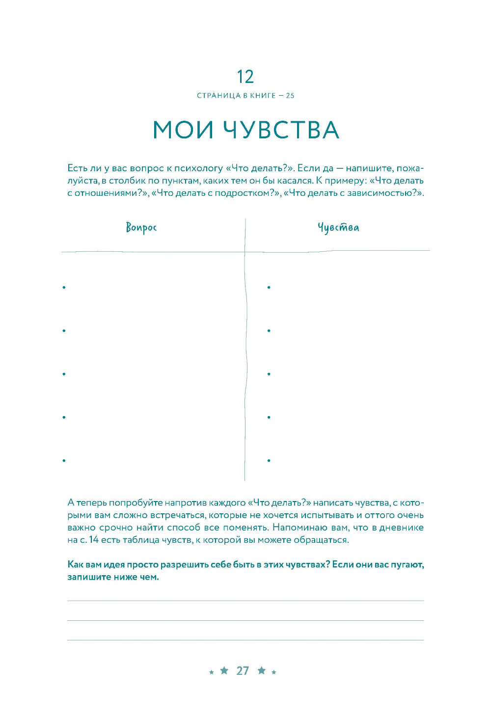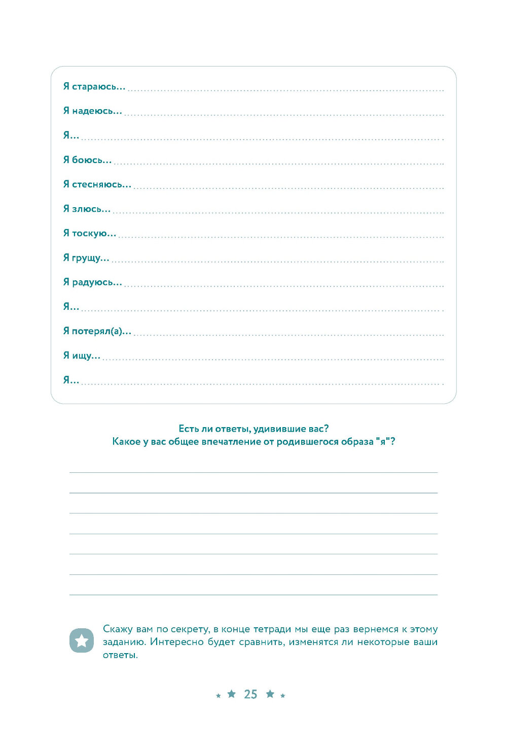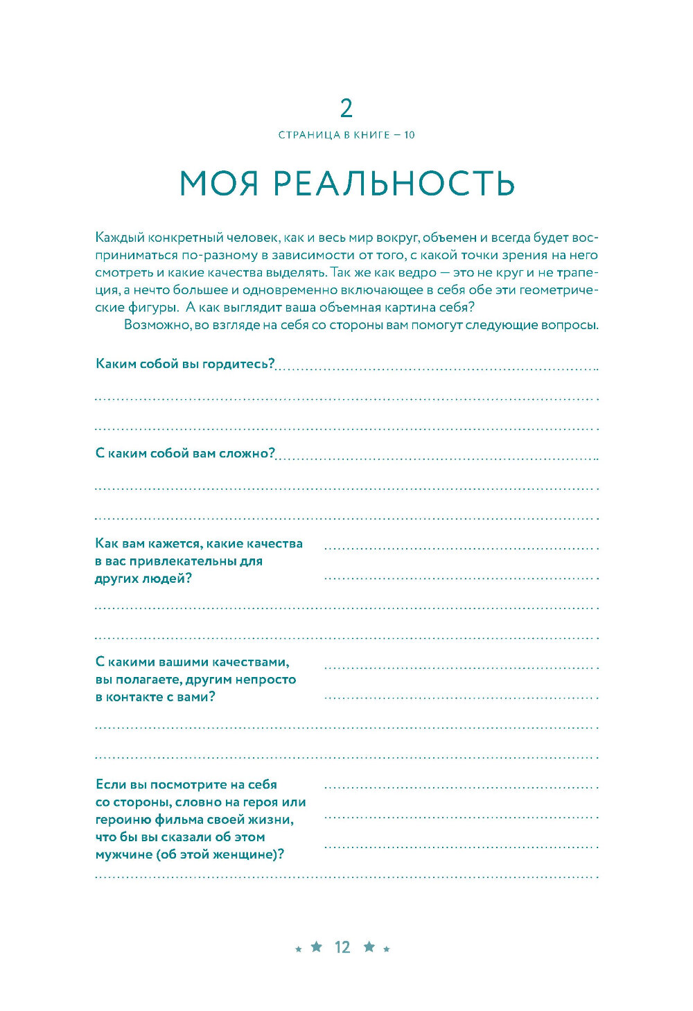 Эта рабочая тетрадь связана с книгой «В тебе есть всё. Психология полноты жизни»: там - 175 текстов-наблюдений-рефлексий-осознаний, здесь - 175 заданий для ваших наблюдений-рефлексий-осознаний. Задания по нумерации соотносятся с текстами книги. У вопросов в этой тетради нет и не может быть конкретных «правильных» ответов, но в конце каждого задания есть предложение заметить, назвать, пережить появляющиеся только ваши чувства. Если какое-то задание вам не удается сделать - не беда, можно вернуться к нему позже или вообще пропустить. Задания в тетради можно выполнять как автономно, так и параллельно с чтением книги (прочли текст - заполнили соответствующее ему задание), а еще есть вариант двигаться в каком-то только вашем интуитивном порядке (к примеру, открыли утром книгу с текстами на случайной странице - прочли текст и сделали соответствующее ему задание в рабочей тетради).| Издательство | Альпина Паблишер |