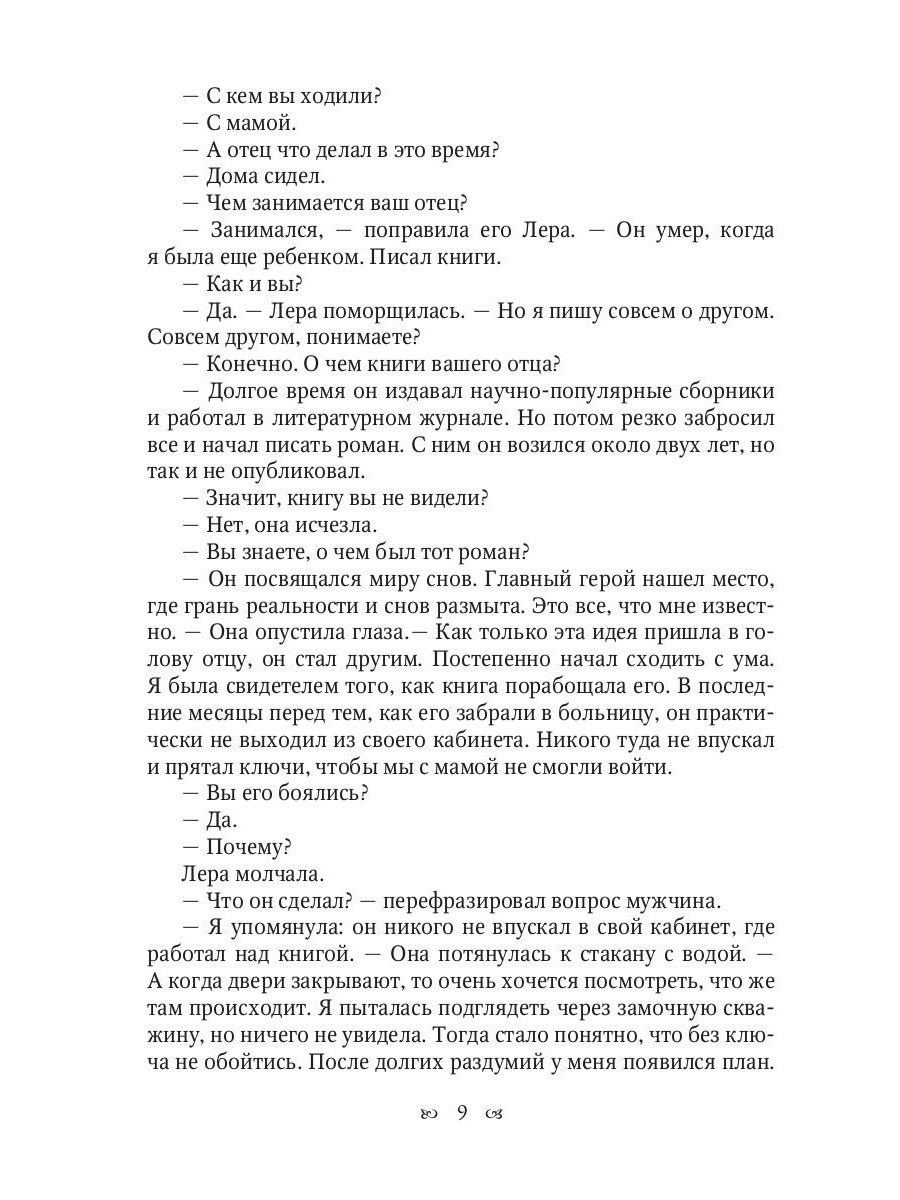 Вы готовы встретиться со своими страхами? Нет? А за миллион? Лера переживает творческий кризис и не может написать ни строчки. Неожиданно она получает приглашение на проект для писателей. Он проходит в заброшенном поселке. Дом, где встречаются участники проекта, хранит множество тайн. Чтобы найти ключи от всех комнат, необходимо отгадать загадки, которые надежно спрятаны в его стенах. Главная героиня начинает искать подсказки и они приводят ее к рукописи отца, исчезнувшей двадцать лет назад.| Издательство | Т8 RUGRAM |