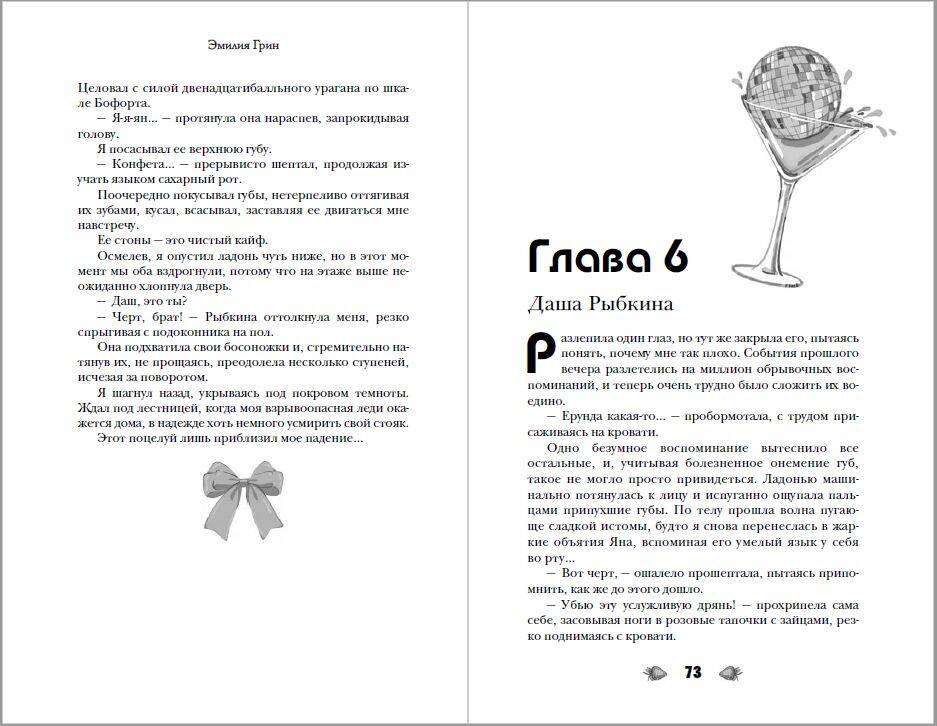 Новинка - коллекционное издание с двумя популярными романами Эмилии Грин под одной обложкой! Обе истории - о страсти, противостоянии и неожиданной близости, где герои балансируют на грани любви и ненависти. «Хулиган» - роман о взаимоотношениях преподавательницы и своенравного студента, забравшего ее личный дневник. Книга «Леди и Бродяга» расскажет о девушке, проникшейся чувствами к анониму, который… оказывается ее ненавистным боссом. Внутри пять сюжетных иллюстраций и два мини-комикса, выполненные на мелованной бумаге. Эксклюзив - бонусная глава, которая еще нигде не публиковалась! Чтобы вам было удобно читать и останавливаться на любимых моментах, в книге есть бархатная ленточка ляссе, которая позволит не потерять нужную страничку! Под двусторонней суперобложкой скрывается сюрприз: одна сторона - это эффектный арт с героями на вечеринке, а другая - словно панно из стилизованных полароидных снимков любимых персонажей, которое можно снять и повесить на стену. Форзацы украшают изображения героев с их анкетами и переписками. На переплете использовано покрытие софт-тач, а звезды выполнены фольгой, которая переливается на свету! Яркий обрез украшает узор из звезд и диско-шаров. Это издание - лучший подарок поклонникам чувственных историй! «Леди и Бродяга» Уже несколько недель я получаю таинственные сообщения с незнакомого номера. Он подписывается всегда одинаково - Бродяга. Безумно хочется отгадать, кто же скрыт под маской таинственного незнакомца, ведь мне кажется, он знает меня даже лучше, чем я сама… А пока я коротаю летние каникулы администратором тату-салона «Волчья пасть». И мой начальник - самоуверенный грубиян, привыкший получать желаемое по щелчку татуированных пальцев. Я бы с радостью уволилась, но, увы, поспорила с подругой, что продержусь на этом месте хотя бы месяц, и намерена выиграть спор. Только бы не проиграть в нем свое сердце… «Хулиган» Алихан Измайлов - типичный мажор, дерзкий парень с порочными мыслями и дьявольской улыбкой. Он владелец самого модного клуба в городе, куда я случайно зашла в последний день лета, еще не догадываясь, что эта встреча перевернет всю мою жизнь. Теперь он мой студент. И, кажется, единственная его цель - сделать мою работу невыносимой. Ситуация ухудшается, когда он крадет мой личный дневник, с целью заставить играть по своим правилам… Познакомьтесь с другими книгами автора: Дилогия «Шипы первой любви»: - «Прогульщик» Продолжение следует… Дилогия «На крыльях любви»: - «Ворон» - «Лебедь» Дилогия «На крыльях любви» (в подарочном оформлении).| Издательство | ООО "Издательство "Эксмо" |