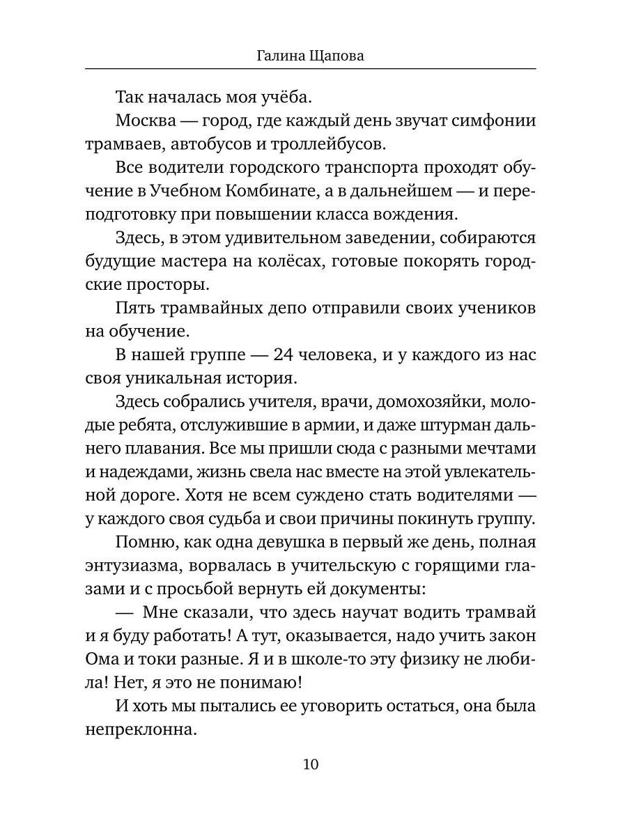 Потрясающую искренность, сдобренную забавными рисунками, предлагает автор, показывая на своем примере - не надо бояться перемен в жизни, а нужно идти дальше к своей цели. Это вдохновляющая история о женщине-ученой, которая в 50 лет круто меняя свою жизнь, становится водителем трамвая. Найдя и в этом призвание, она сумела оставить в истории свой след. Полученный опыт автор изложила с присущими ей оптимизмом, наблюдательностью и чувством юмора.| Издательство | Рипол Классик |