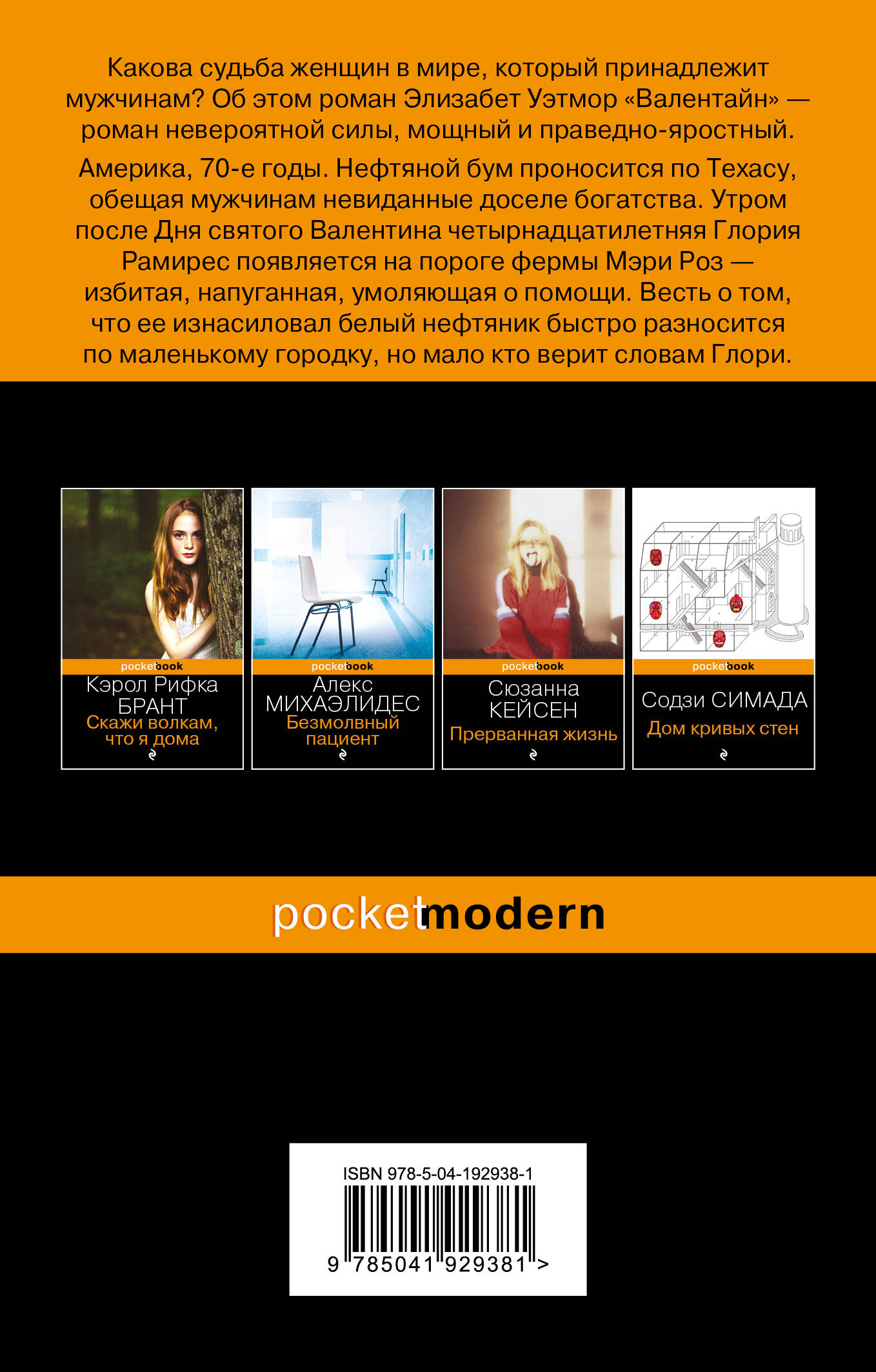 Действие романа разворачивается в 70-е, в маленьком городке Одесса, штат Техас. Четырнадцатилетняя Глория Рамирез подверглась жестокому изнасилованию. «Валентайн» повествует о том, как на это происшествие отреагировали жители города, а в особенности - женщины. Женщины, угнетенные патриархатом, женщины, которые страдали от норм религии и политики, женщины, которых считали второсортными членами общества. Но то, что случилось с Глорией, заставит их переосмыслить свое положение и наконец начать бороться за справедливость. «Однако - и в этом заключена уникальность Элизабет Уэтмор - из самого что ни на есть "повесточного", утрировано актуального сора она ухитряется прорастить нечто поразительно естественное, живое и прекрасное. То, что у других свелось бы к банальному и прямолинейному идеологическому императиву, в ее исполнении обрастает полутонами, наливается сложностью, щемящей детальностью, безусловной достоверностью и глубиной. Актуальность романа Уэтмор - результат не осознанного желания встроиться в тренд, но редкого и потому особо ценного совпадения социального запроса и живой персональной обеспокоенности. И именно эта способность непосредственно переживать всеобщее как личное, откликаться собственной горячей эмоцией на глобальные веяния и позволяет поставить "Валентайн" в один ряд с лучшими образцами великого американского романа». - Галина Юзефович «Захватывающий дебют... "Валентайн" - это история о том, как женщины - особенно женщины без образования и денег - выживают в мире мужской жестокости. Это история их жизни в захолустном нефтяном городке в середине 1970-х, которую Уэтмор, кажется, знает настолько глубоко, что становится больно... Тщательно продуманный и эмоционально захватывающий роман». - Washington Post «Памятник своего рода милосердию и истинной твердости духа». - Entertainment Weekly «Яростный и сложный, "Валентайн" - это роман моральной актуальности и захватывающей дух прозы. Это само определение потрясающего дебюта». - Энн Патчетт «Мне не верится, что Элизабет Уэтмор начинающая писательница. Как у нее получилось ворваться на сцену с такой мощью и мастерством? "Валентайн" блестящий, острый, напряженный и разрушительный. Уэтмор вырвала жестокий, грандиозный Западный Техас из рук мужчин и передала слово девочкам и женщинам, тем, кто всегда страдал, выживал и все равно оставлял свой след в этом враждебном мире. Эти невероятно живые и незабываемые женские персонажи навсегда останутся со мной». - Элизабет Гилберт| Издательство | ООО "Издательство "Эксмо" |