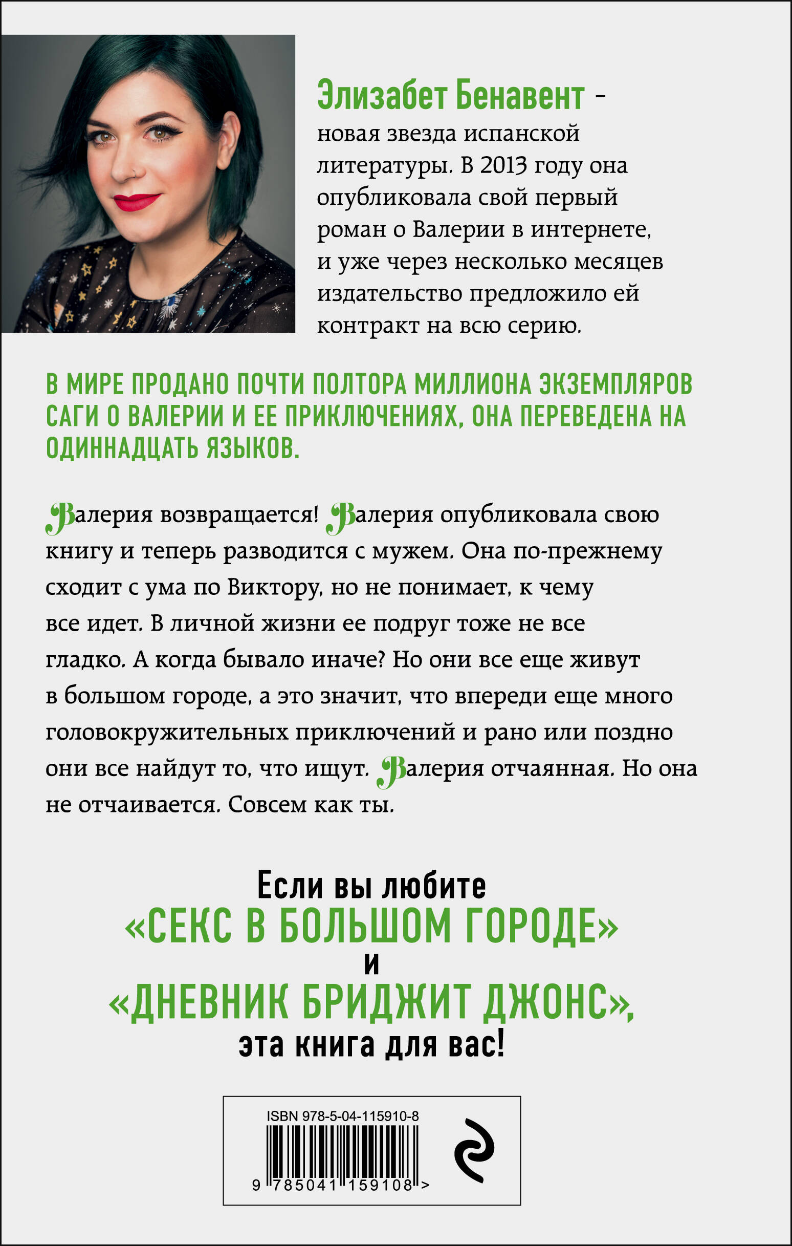 Секс в большом городе Мадриде. Встречайте новые приключения Валерии и трех ее лучших подруг. Валерия разводится с мужем и теперь готова с головой окунуться в новую любовь, но это ли ей нужно на самом деле? Как быть с мужчиной, который слишком сильно привязан к маме? Что делать, когда тест показывает две полоски, а ты к этому совсем не готова? На самом ли деле «свободные отношения» такие уж свободные? Валерии и ее подругам предстоит найти ответы на множество вопросов, но у них обязательно получится! «Валерия в зеркале» - смешной, легкий роман о молодых женщинах XXI века.| Издательство | ООО "Издательство "Эксмо" |
